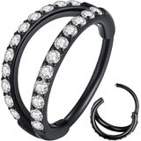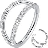 Sold as A Single Piece. Shiny Double Row Clear CZ Hoop Nose Ring/Hoop Earring Size: Bar thickness 20G(0.8mm),Inner diameter 8mm(5/16 inches).This double hoop hinged segment nose ring is a absolute staple piece of jewelry in anyone's choice.we've got you covered with the huge selection of available gauge sizes and diameters to ensure the perfect fit! And it is lightweight and comfortable to wear and won't easy to slip off.