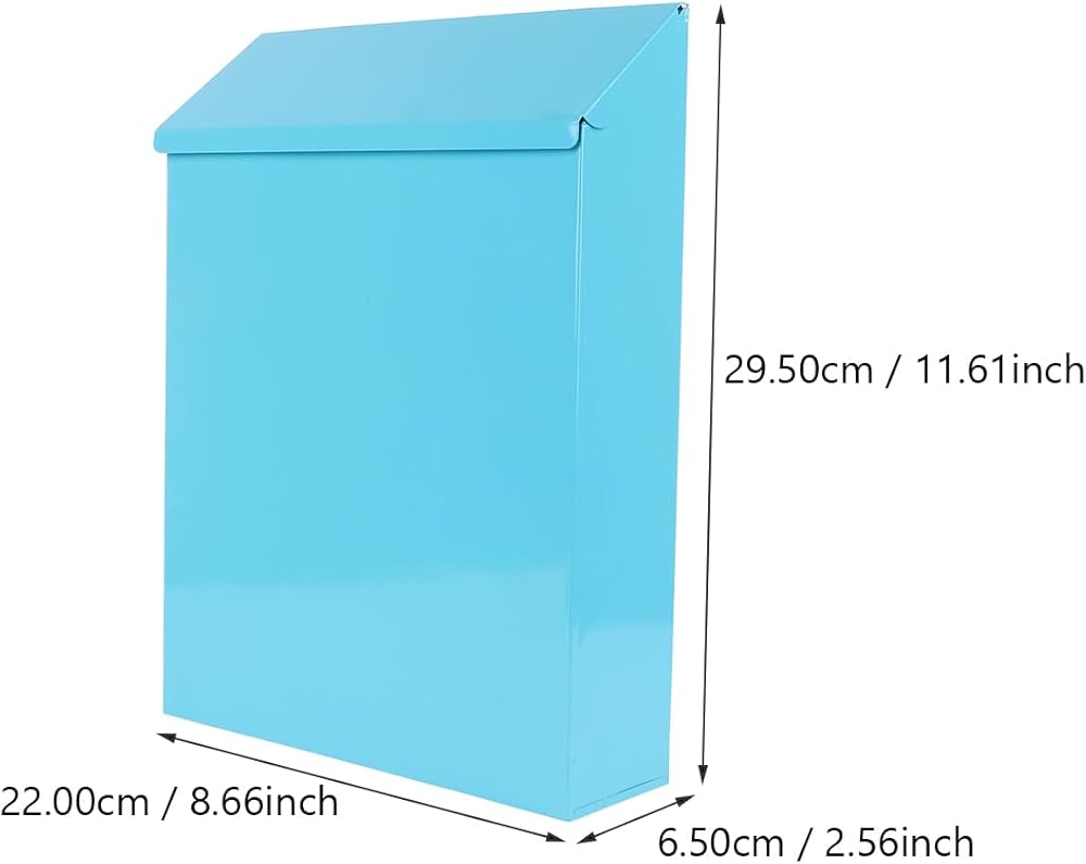 Wakauto Metal Wall Mount Mailboxes,Waterproof Suggestion Box with Slot and Lock Safety Drop Letter Lock Box for Home Office Outdoor Door 11.59x8.65x2.55in,Blue