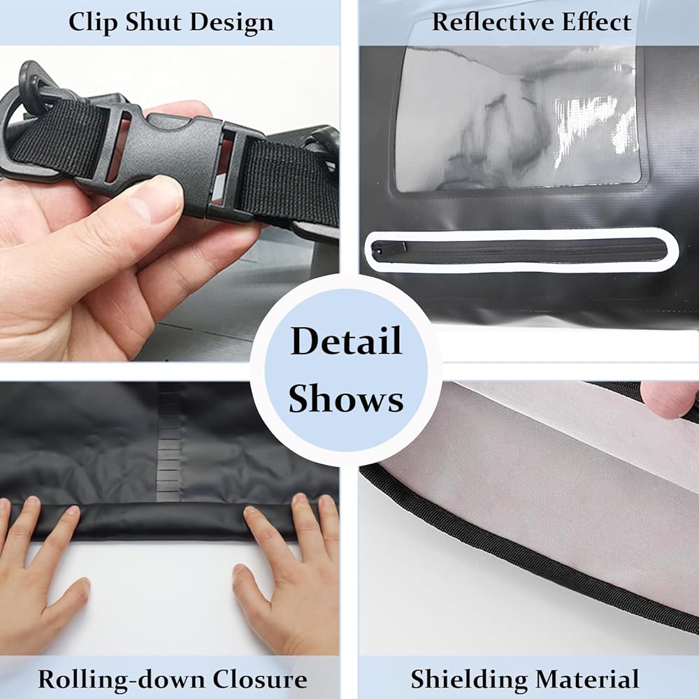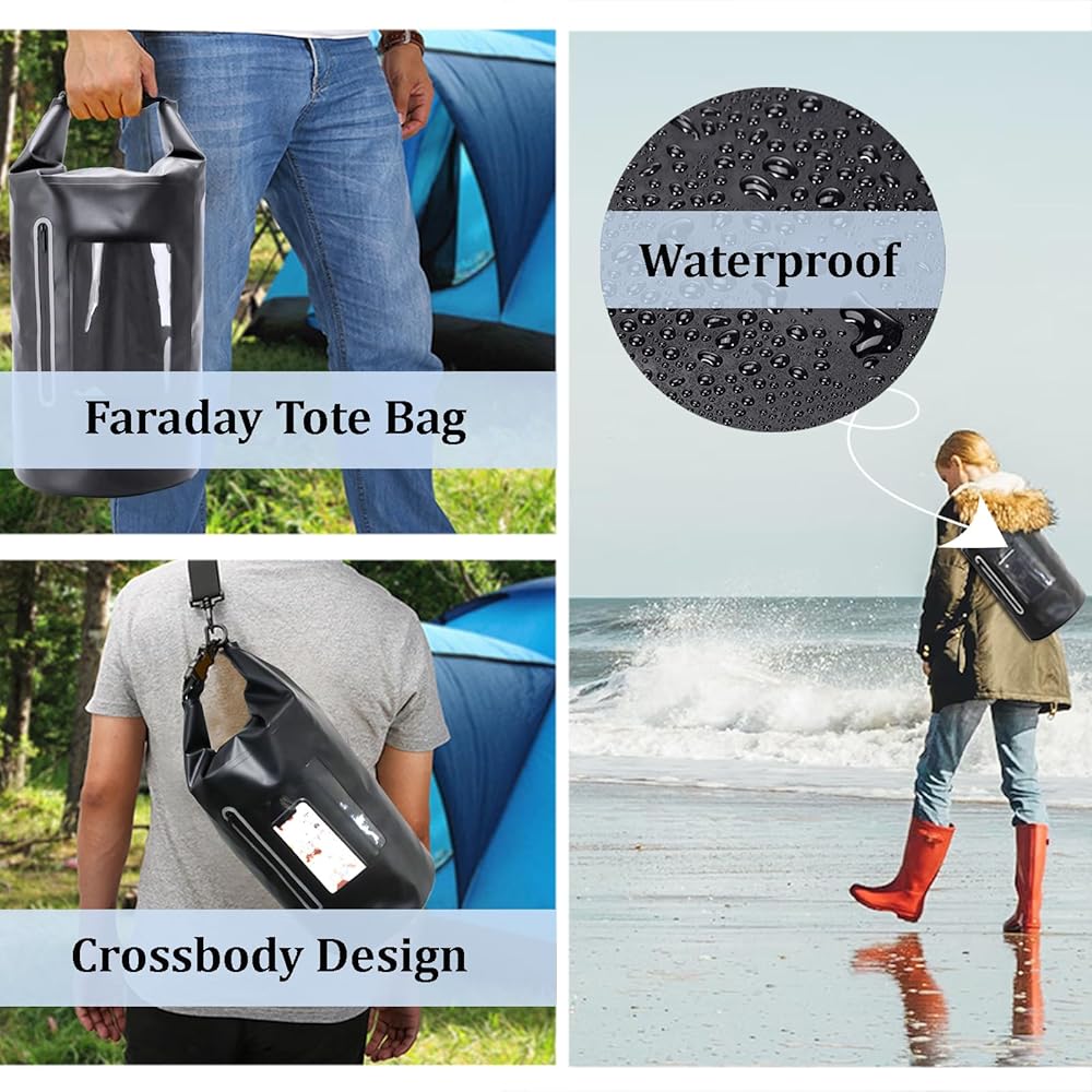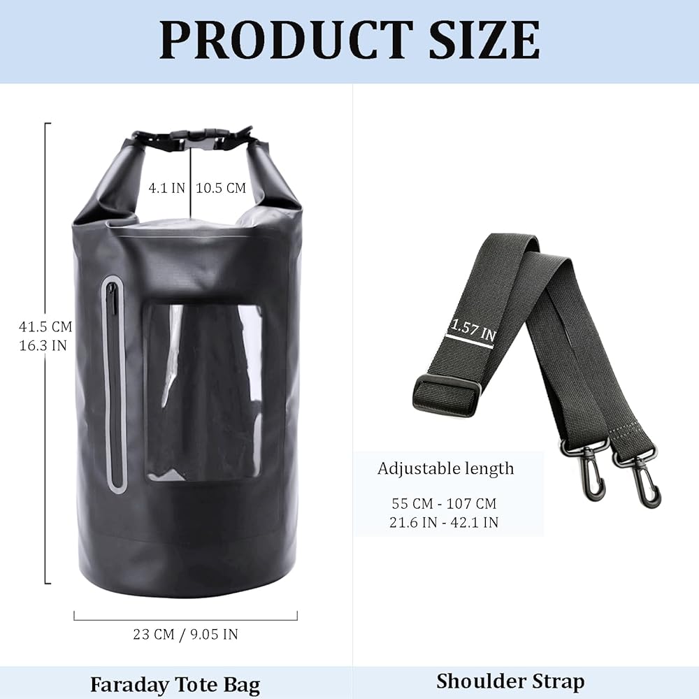 ✔️【Waterproof Faraday Bag with Adjustable Strap】The exterior of faraday dry bag is made of high-quality PVC waterproof material, making it ideal for beach, kayaking, boating, swimming, and camping. Your items in the bag are highly protected from getting wet in the rain by our well sealed and waterproof faraday cage.Adjustable length: 21.6"~42.1", Our faraday bags can be used not only as a handbag but also as a crossbody bag.