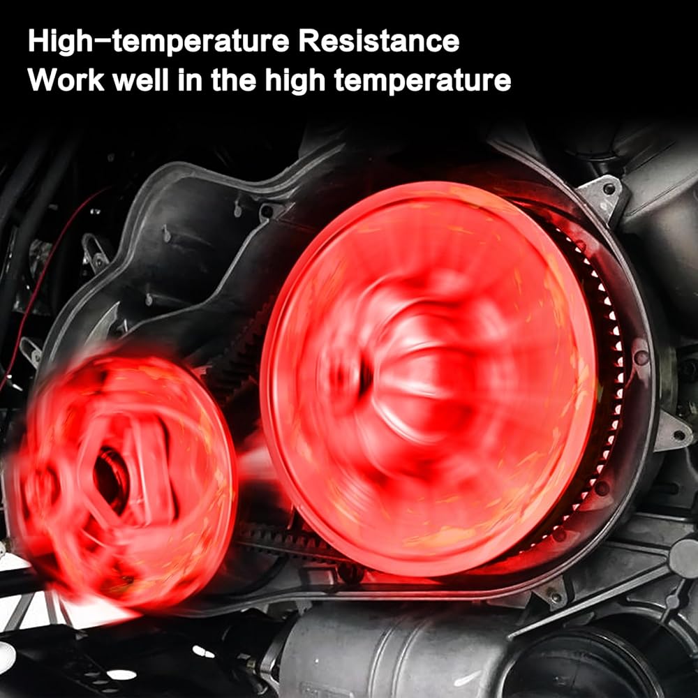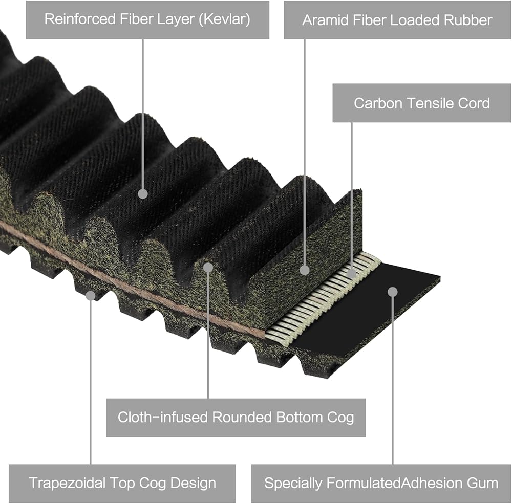 【Heat-Resistant Excellence】Crafted from premium chloroprene rubber and aramid string cord, Maverick sport 1000R drive belt excels in heat resistance. Engineered for reliability during high-speed action, it stays securely tightened even in scorching conditions. With a cutting-edge DUMAX high-temperature compound, it conquers temperatures up to 340°F/170℃. This belt's exceptional flexibility and cooling capabilities ensure durability under extreme heat.