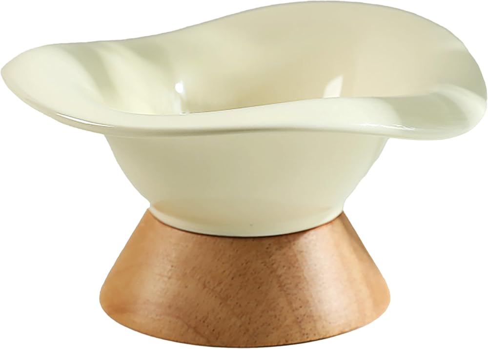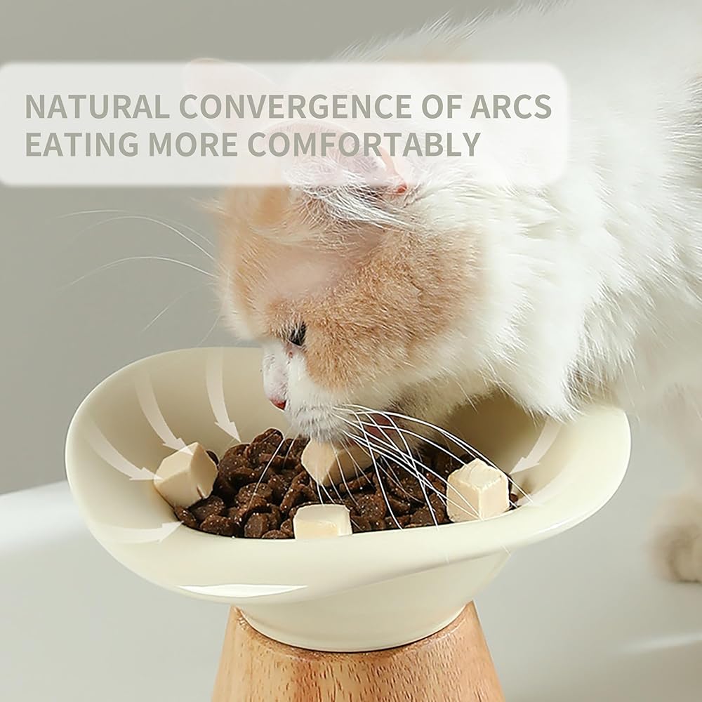 🐈EASY TO USE AND CLEAN: The oak base attaches to the bowl with Velcro, which is stable and will not fall off, easy to install and remove, and can be removed repeatedly for cleaning.
