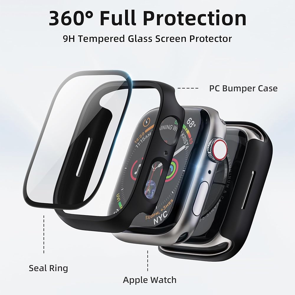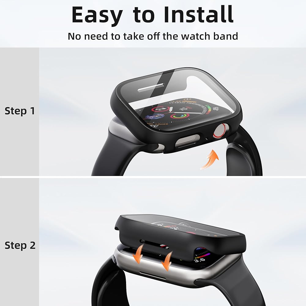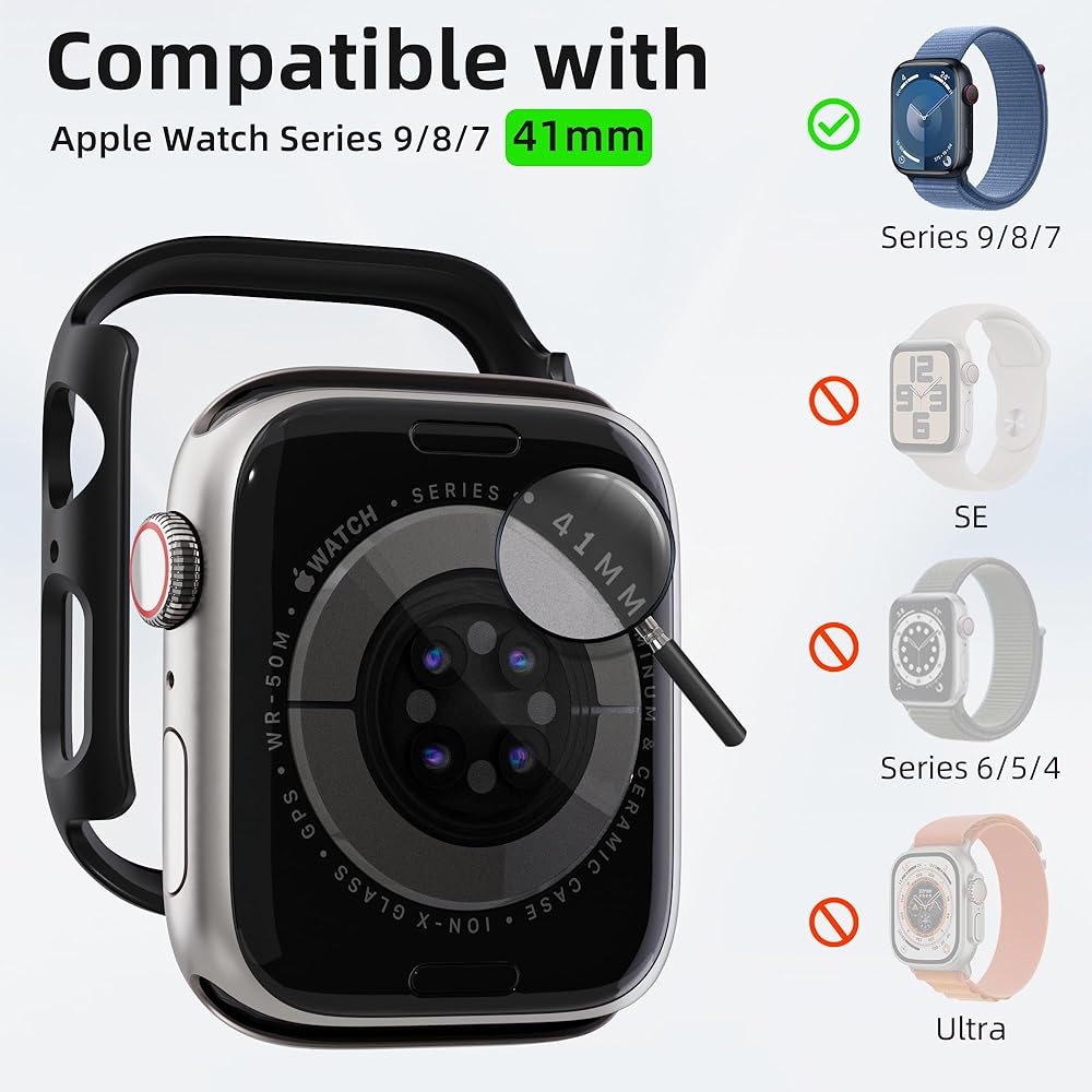 【Compatible Model】The Screen Protector Case only compatible for Apple Watch Series 9/8/7 41mm. Kit Contains Apple Watch Ultra screen protectors*2. Fits for most kinds of indoor and outdoor sports. Please choose the right protective case according to the model of your iWatch. 【HD&Touching precision】Ultra-thin 9H tempered glass with special fingerprint-resistant oleophobic coating, it keeps screen clean and clear, accurately achieve the touch screen effect, presents original clear image quality and touch sensitivity. 【Full Screen Protector Case】The apple watch Series 9/8/7 41mm screen protector is made of premium matte PC material and 9H tempered glass screen protector. The apple watch case 41mm covers the apple watch screen and curved edges, protect iWatch from scratches, cracked and bumps. Best Choice! 【Easy to Take On & Off】The apple watch Series 9/8/7 41mm screen protector with precise cutouts for functional buttons and ports, allows access to all controls, buttons, sensors and Apple watch features. You can easy snap on and take off the case, Charge directly, don't need to take off the apple watch ultra band and case. 【Lifetime Service】We promise to provide comprehensive 12-month warranty, lifetime support, and personalized help to every customer. If you find any scratches/cracked/damages or any quality-related issues, please do not hesitate to CONTACT US and we will solve it for you within 24 hours.