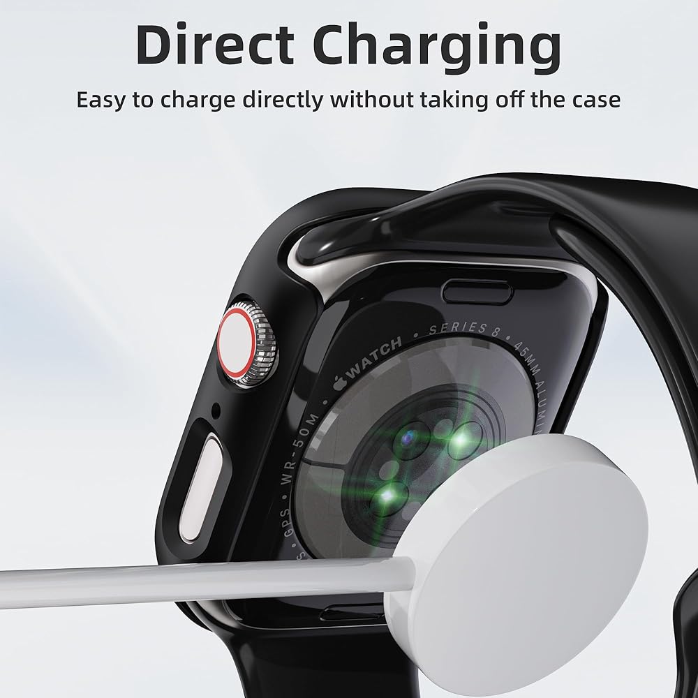 【Easy to Take On & Off】The apple watch Series 9/8/7 41mm screen protector with precise cutouts for functional buttons and ports, allows access to all controls, buttons, sensors and Apple watch features. You can easy snap on and take off the case, Charge directly, don't need to take off the apple watch ultra band and case.