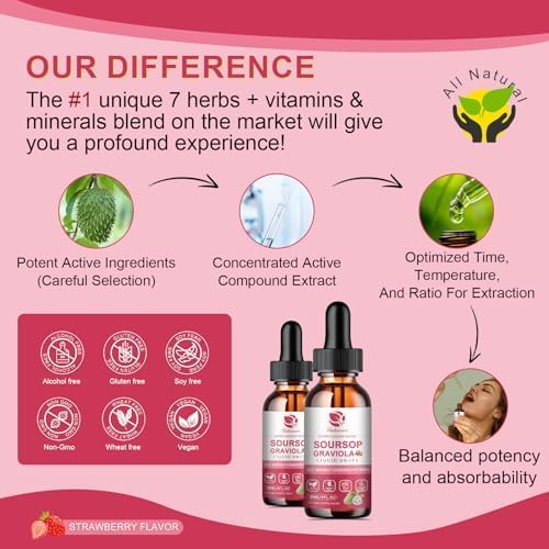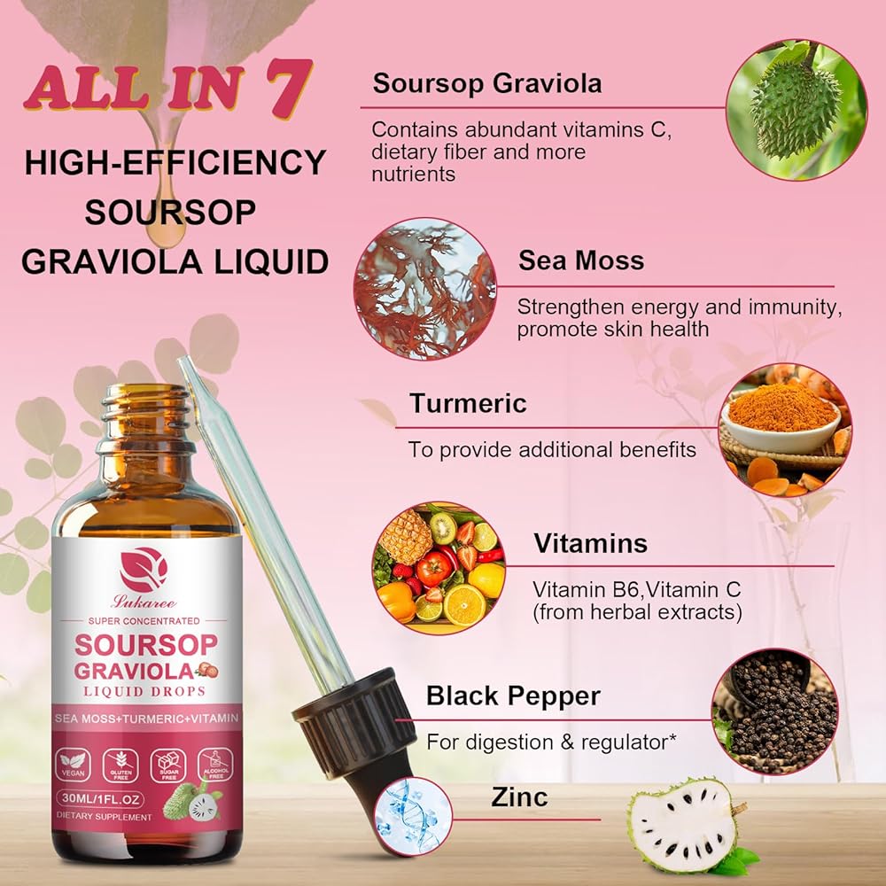 NUTRIENT-RICH SOURSOP LEAF EXTRACT (GRAVIOLA): Comprehensive Unleash The Power Of The Soursop! Soursop(Graviola) is rich in vitamins C, B1, B2, B17, essential minerals and dietary fiber, synergistically matched to maximize nutritional value and health benefits. This liquid powerhouse is a go-to source for feeling more alive and vibrant daily! Your body will thank you for this plant-powered boost of soursop drop!*