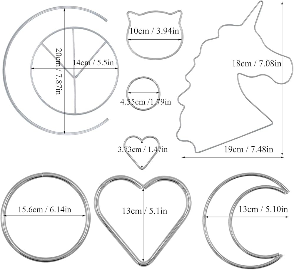 9 PCS Silver Metal Dream Catcher Ring Hoop Macrame Hoop Ring Moon Bear Cat Horse Half Circle Peace Shape Metal Hoops for Wall Wreath Craft Making Decoration (4-7inch)