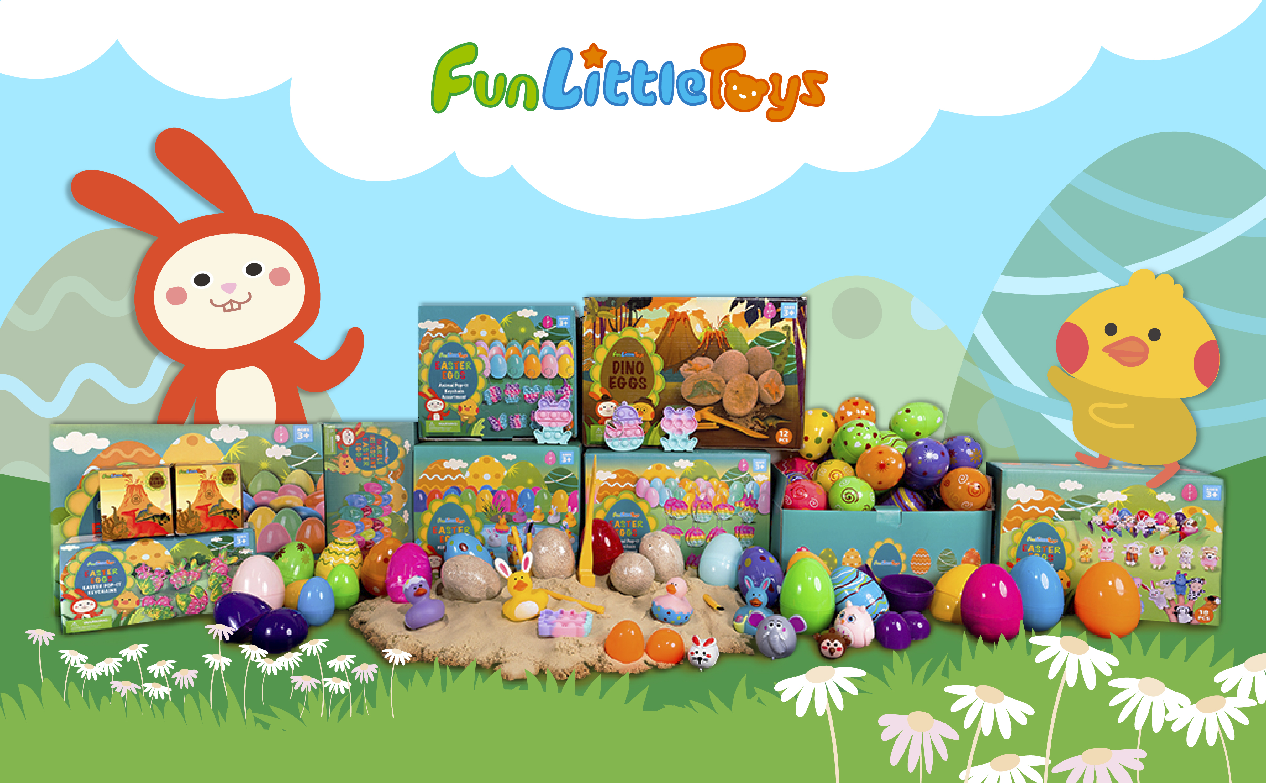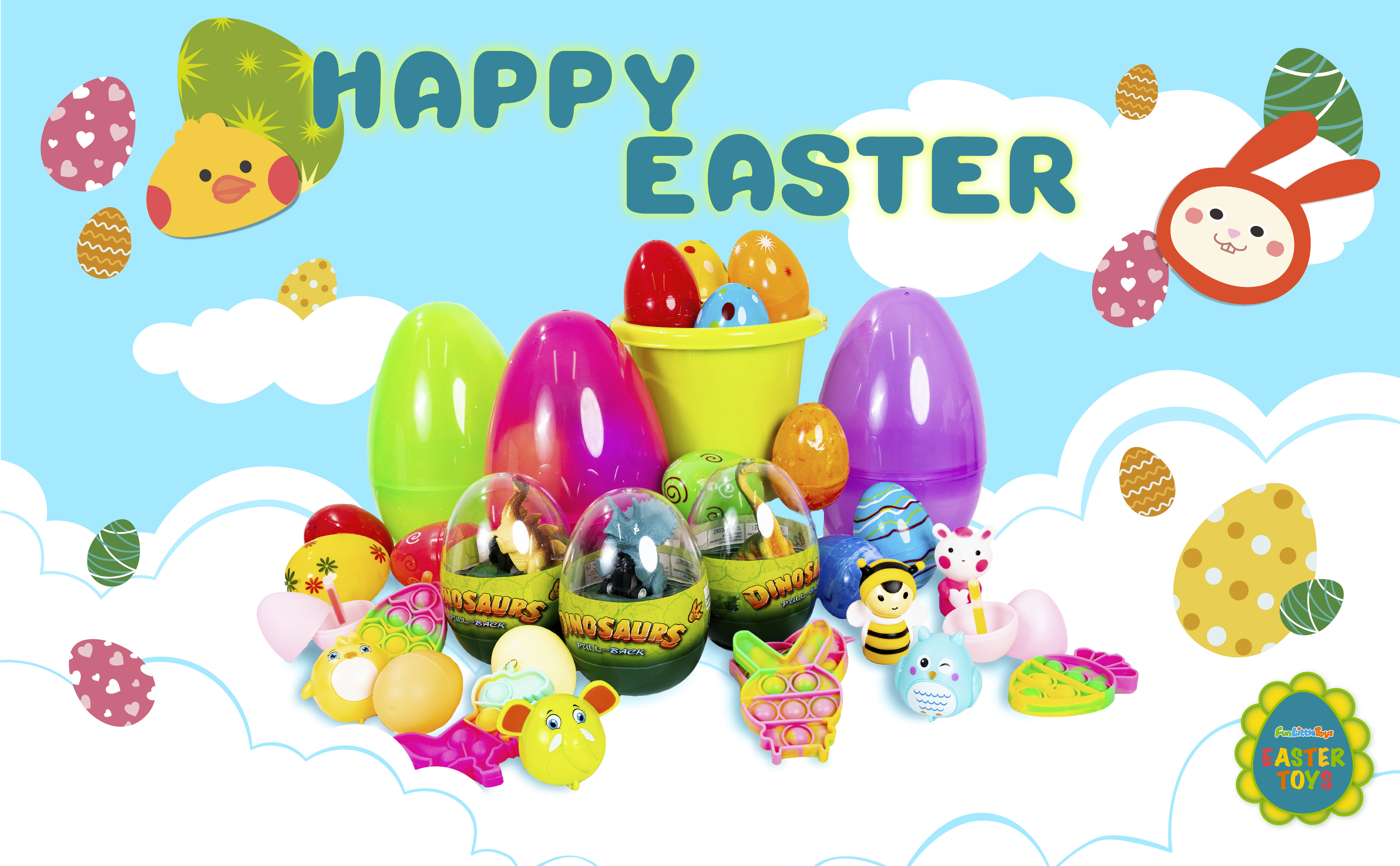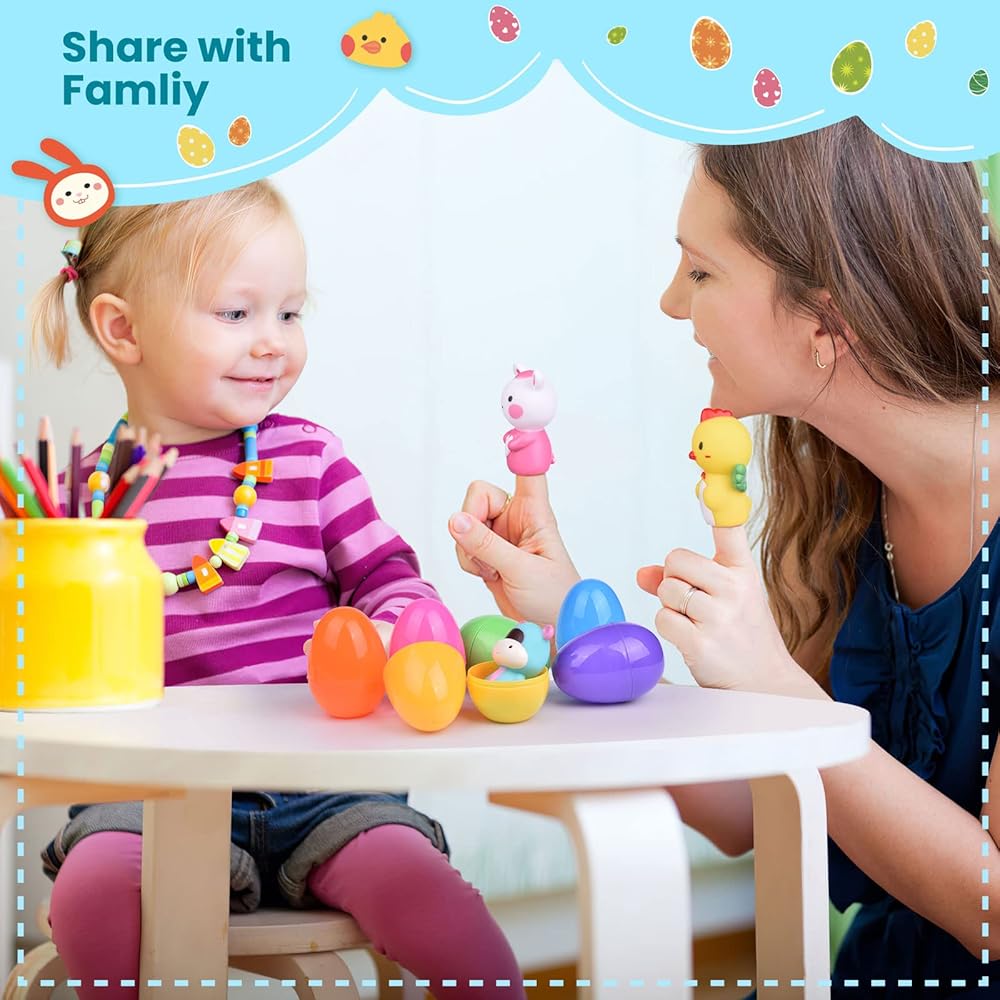 FUN LITTLE TOYS 10 PCS Easter Party Favors for Kids with Bunny Chick Finger Puppets Assorted Easter Egg Fillers, Easter Basket Stuffers for Toddlers Kids Gifts
