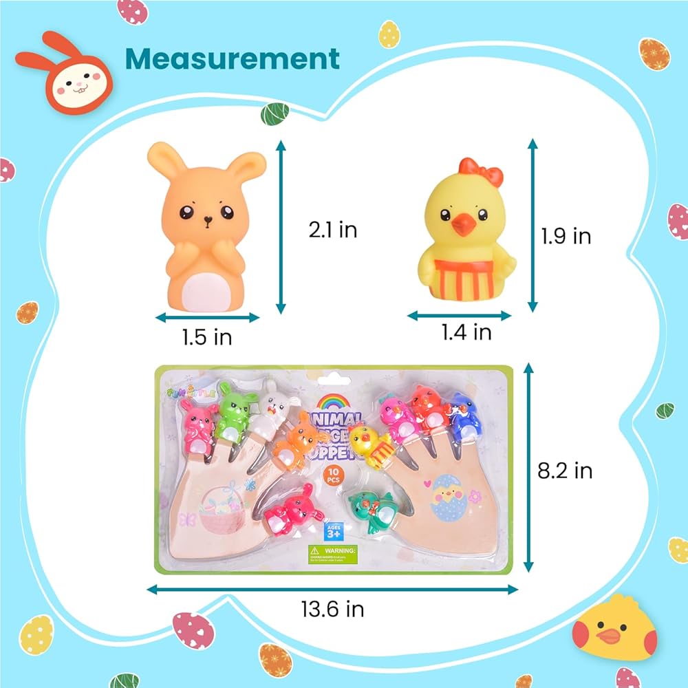 Fun Bath Time: Set of 10 Friendly Characters Bath Finger Puppets for toddlers, makes for good story time and fun bath play. Encourages storytelling and offers hours of pretend play fun for kids. When they move the Bunnies & Chicks in the water, your children can practice using their hands and fingers.