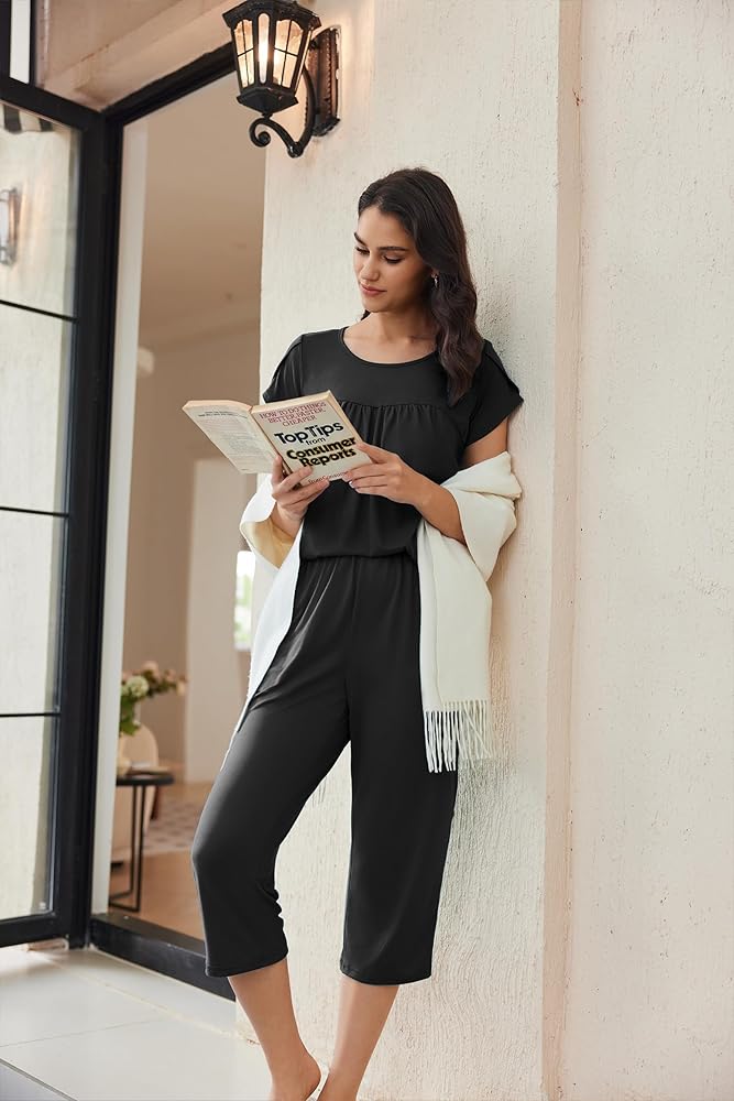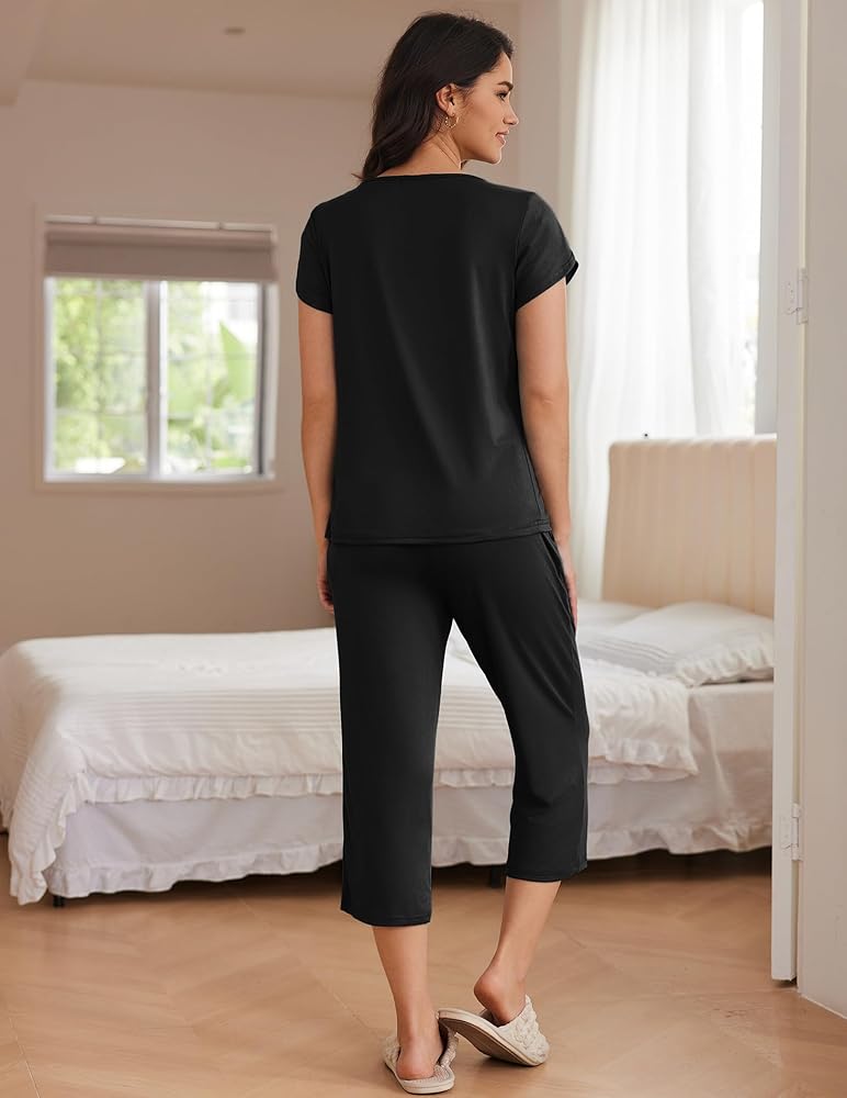MATERIAL:The capri pajamas set is made of 95% polyester 5% spandex fabric which is light, breathable and skin-friendly, giving you a comfortable wearing experience
