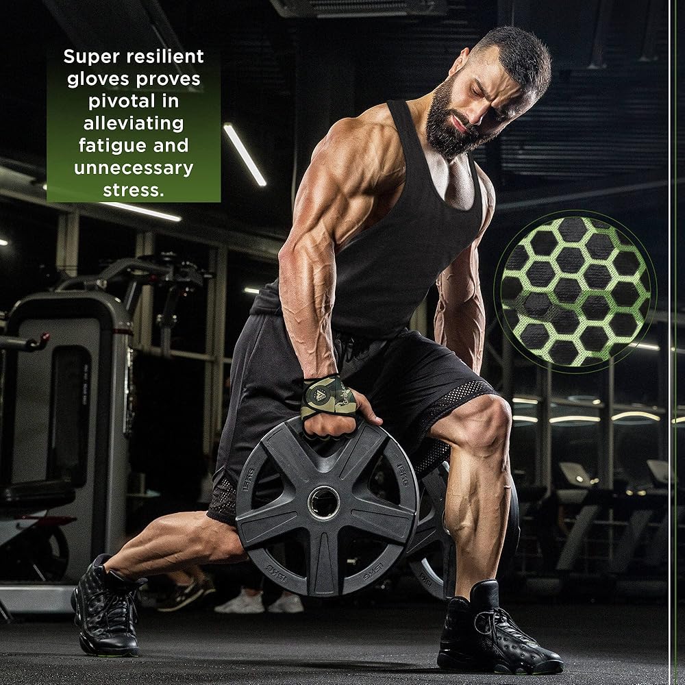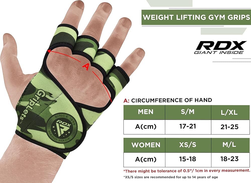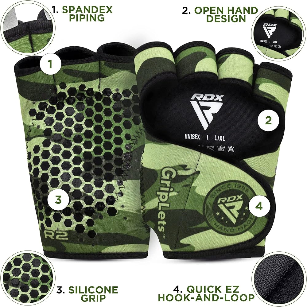 RDX Weight Lifting Gloves Grips, Gym Fitness Workout, Anti Slip Ventilated Open Back Gripper, Strength Training HIIT Exercise Deadlift, Men Women Cycling Rowing Climbing Hanging Pull Ups Gymnastics