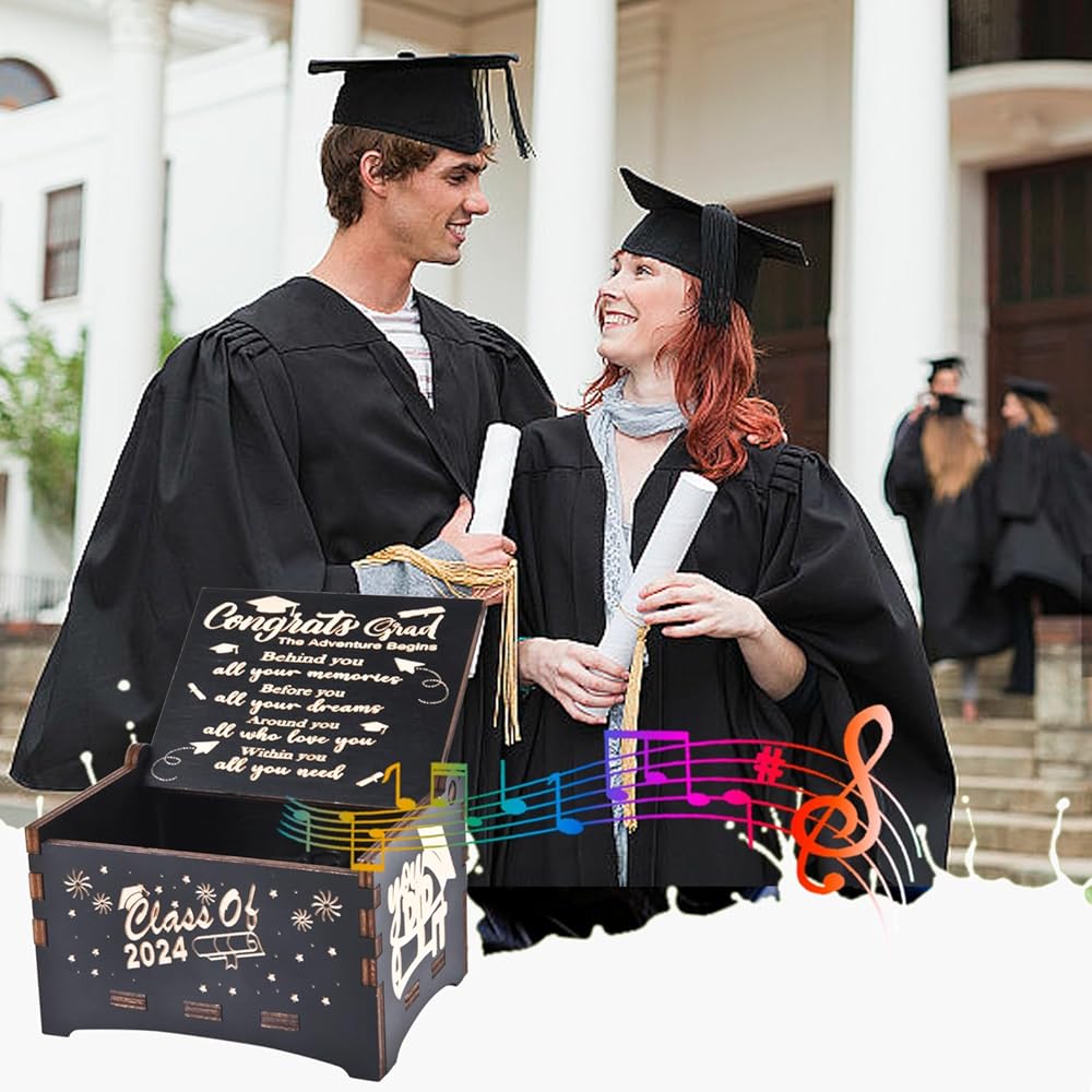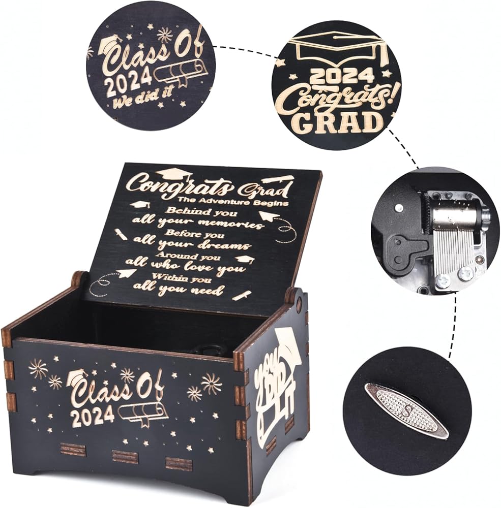 2024 Graduation Gifts for Her Him, Vintage Engraved Inspirational Wooden Music Boxes Graduation Souvenir, College, Senior, High School Inspirational Graduation Gift