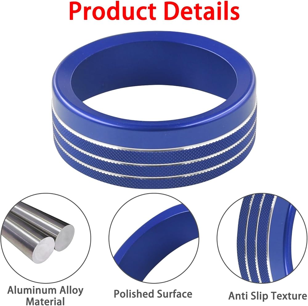 [Carefully Crafted]: The AC climate knob cover is made of lightweight and high-quality aluminum alloy material, with a hard texture. The surface of the ring is oxidized and colored, emitting a bright metallic luster that does not fade or change color easily.
