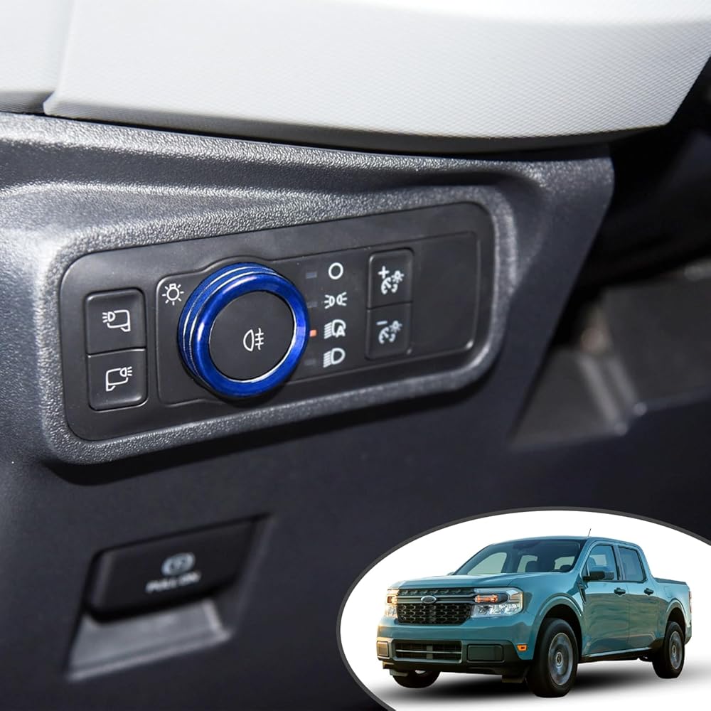 Air Conditioner Knob Cover for Ford Maverick Accessories 2022 2023 2024 Center Console Volume Radio Headlight Knob Trim Gear Shift Switch Ring Engine Start Stop Button Cap (7pcs, Blue)