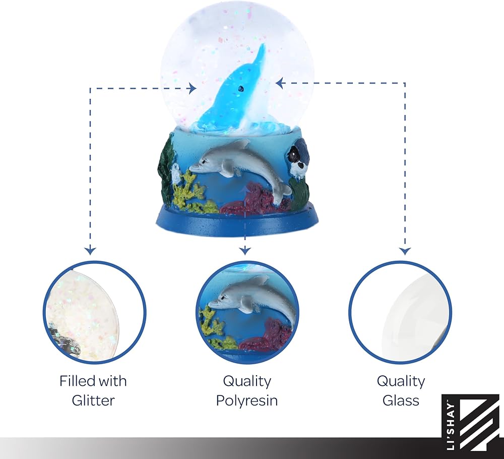 This is a beautiful Snow Globe for Men, Women or Girls in Ocean or Nautical Style. Add to your snow globe collection, or enhance your room's décor with this lovely item. Choice of styles…or get them all! Makes a great gift for a friend who loves snow globes or whales dolphins crabs or more!