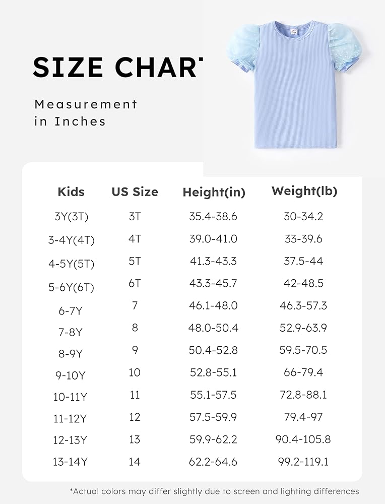 Adorable Design: Our PATPAT Toddler Kid Girls Mesh Puff Short Sleeve T-Shirt features delicate mesh puff sleeves, perfect for everyday wear and special occasions.