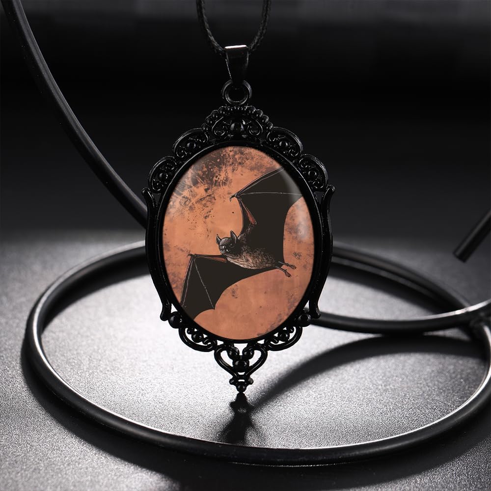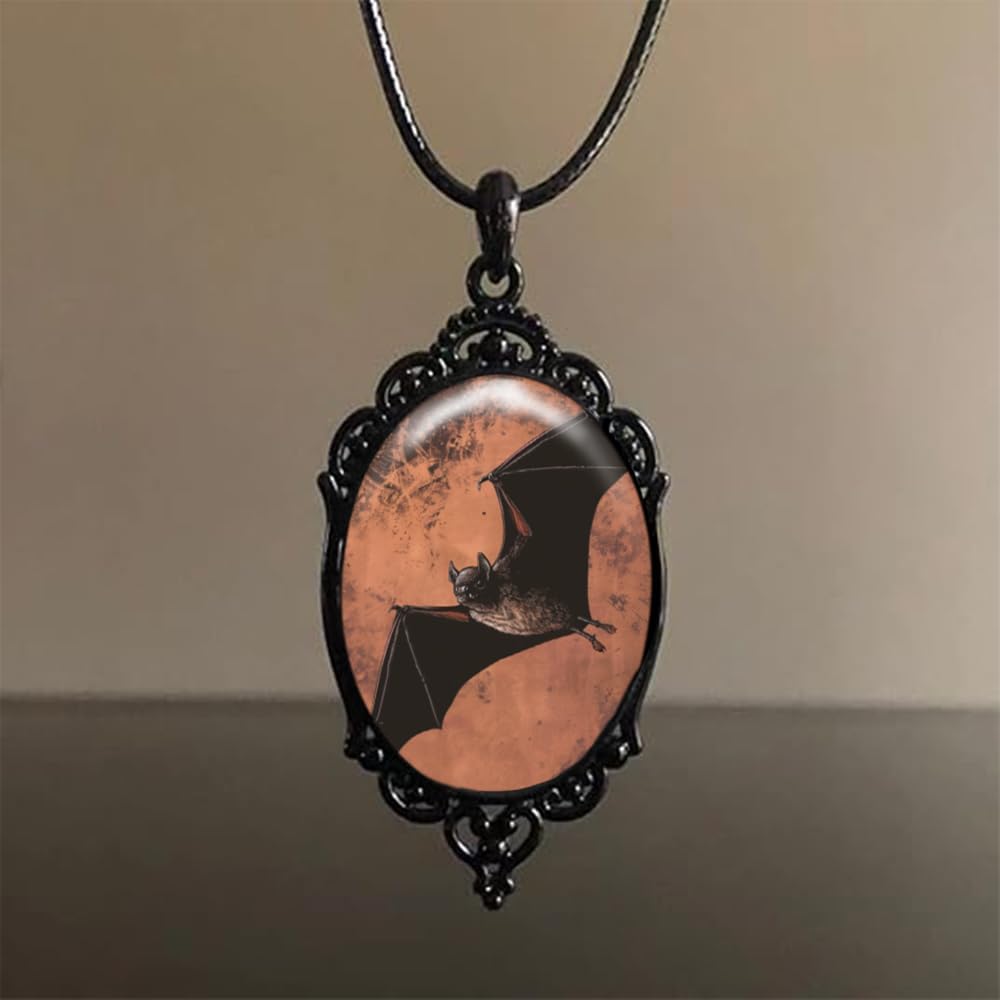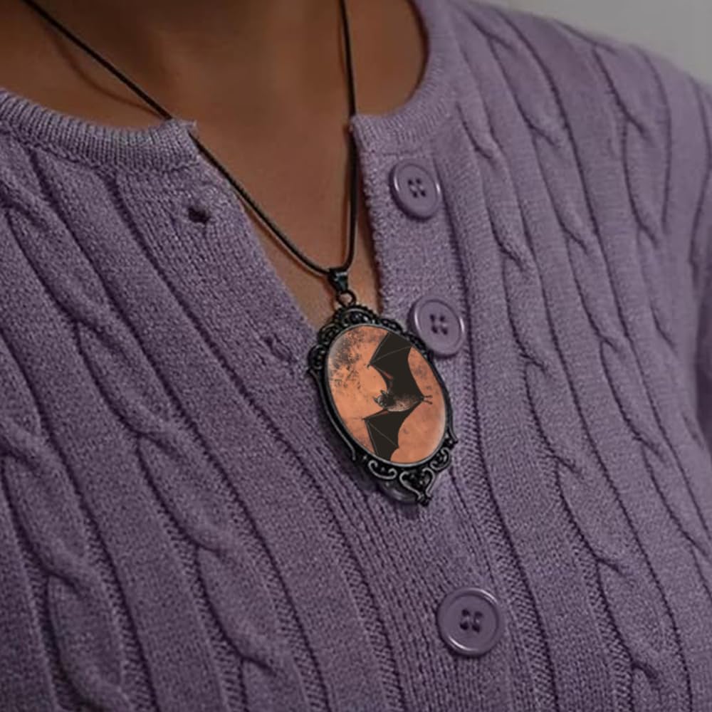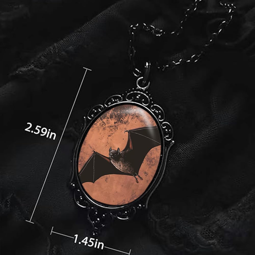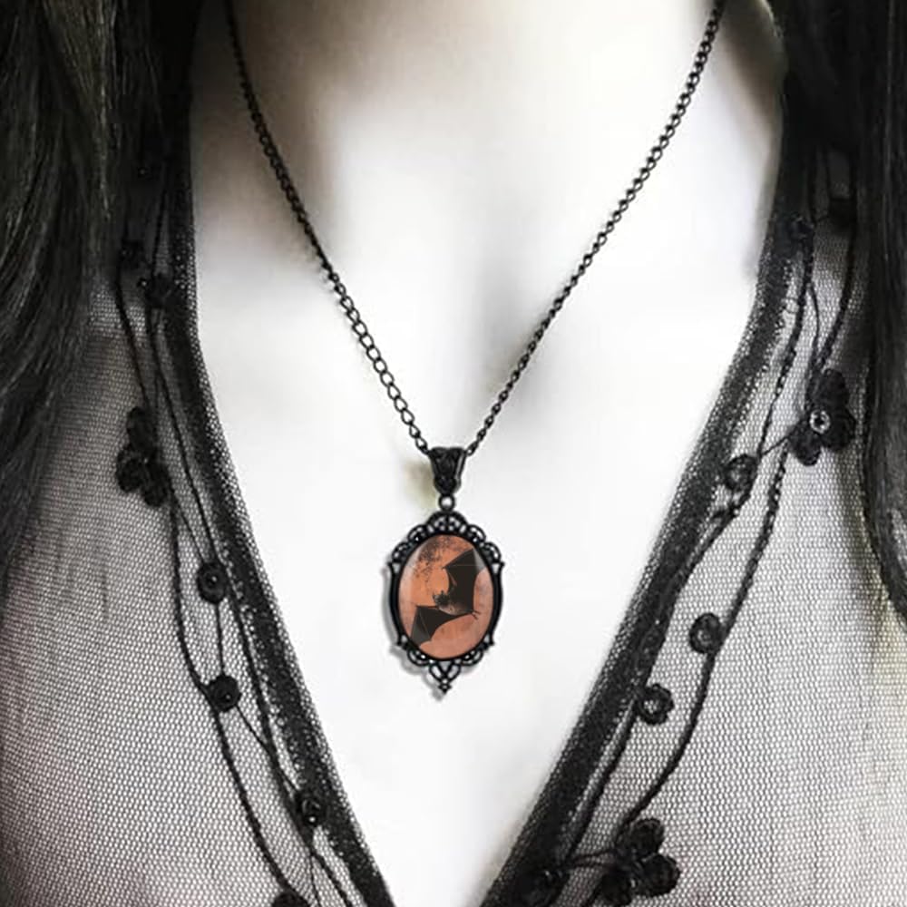 Typical Goth Necklace --- The vampire transforms into a bat and flies in the sunset-red sky at dusk., inspired and imagined by designers, it finally presents a typical goth vampire necklace. Not only for daily fashion, but also perfect Halloween costumes accessories