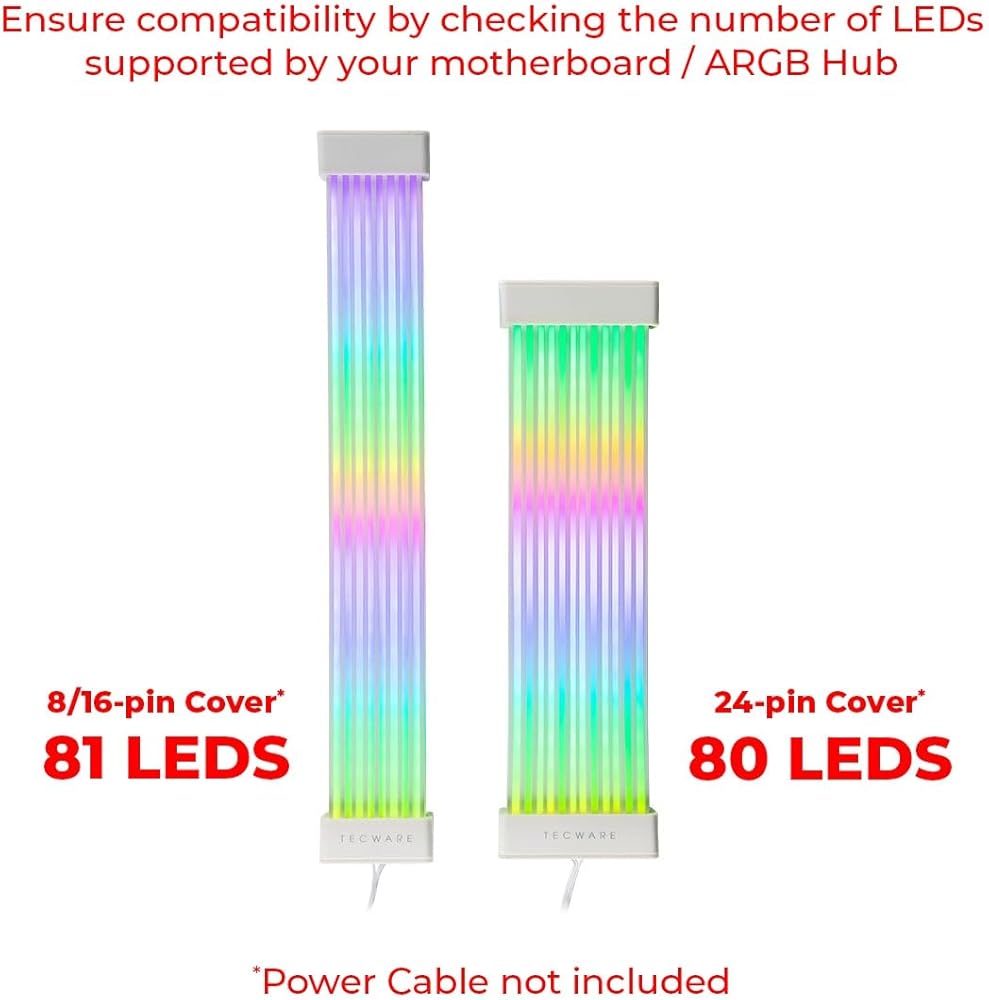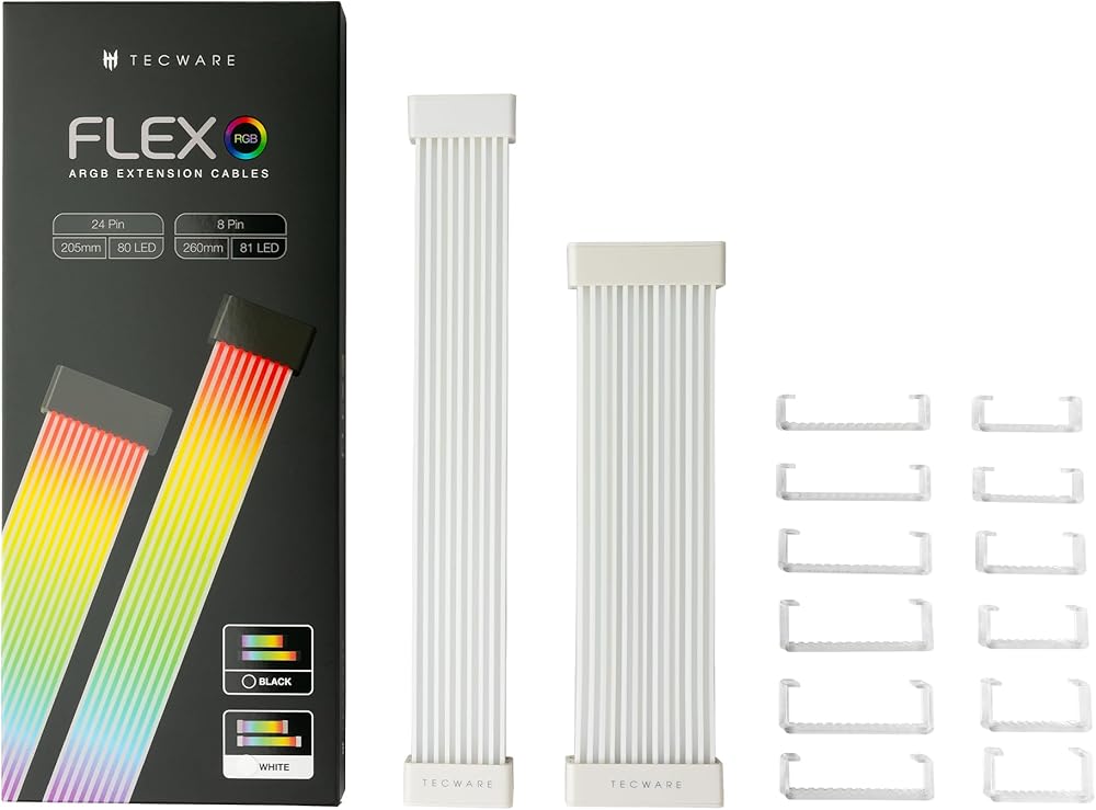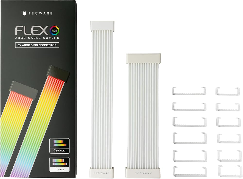 TECWARE Flex RGB Light Strip Set for PSU Extension Cables, GPU Cable and Motherboard Cable LED Cover, 5V 3 pin ARGB Sync PC Case Accessory, Compatible with 8-pin, 16-pin, 24 pin (White)