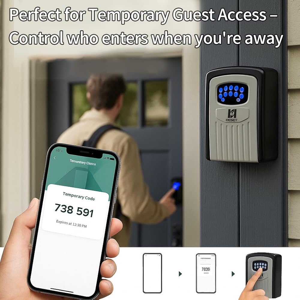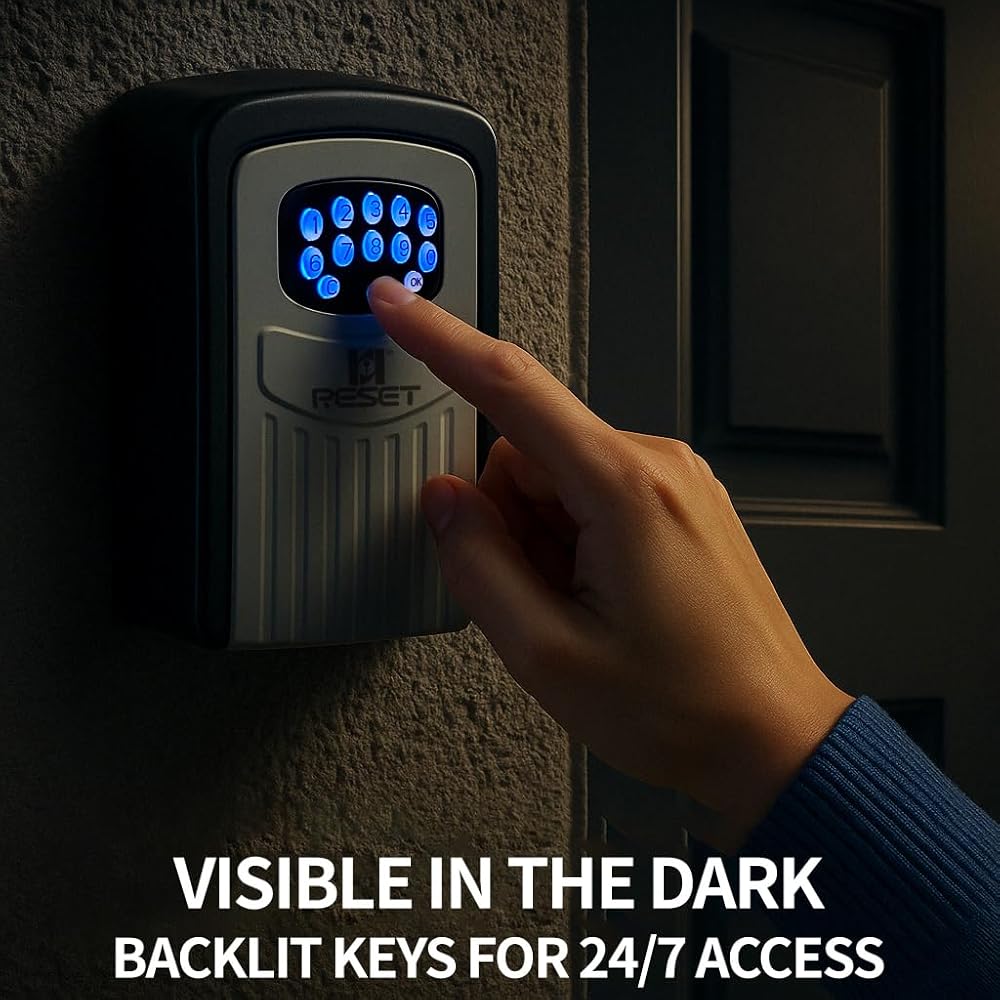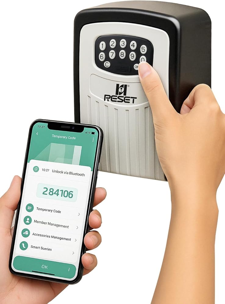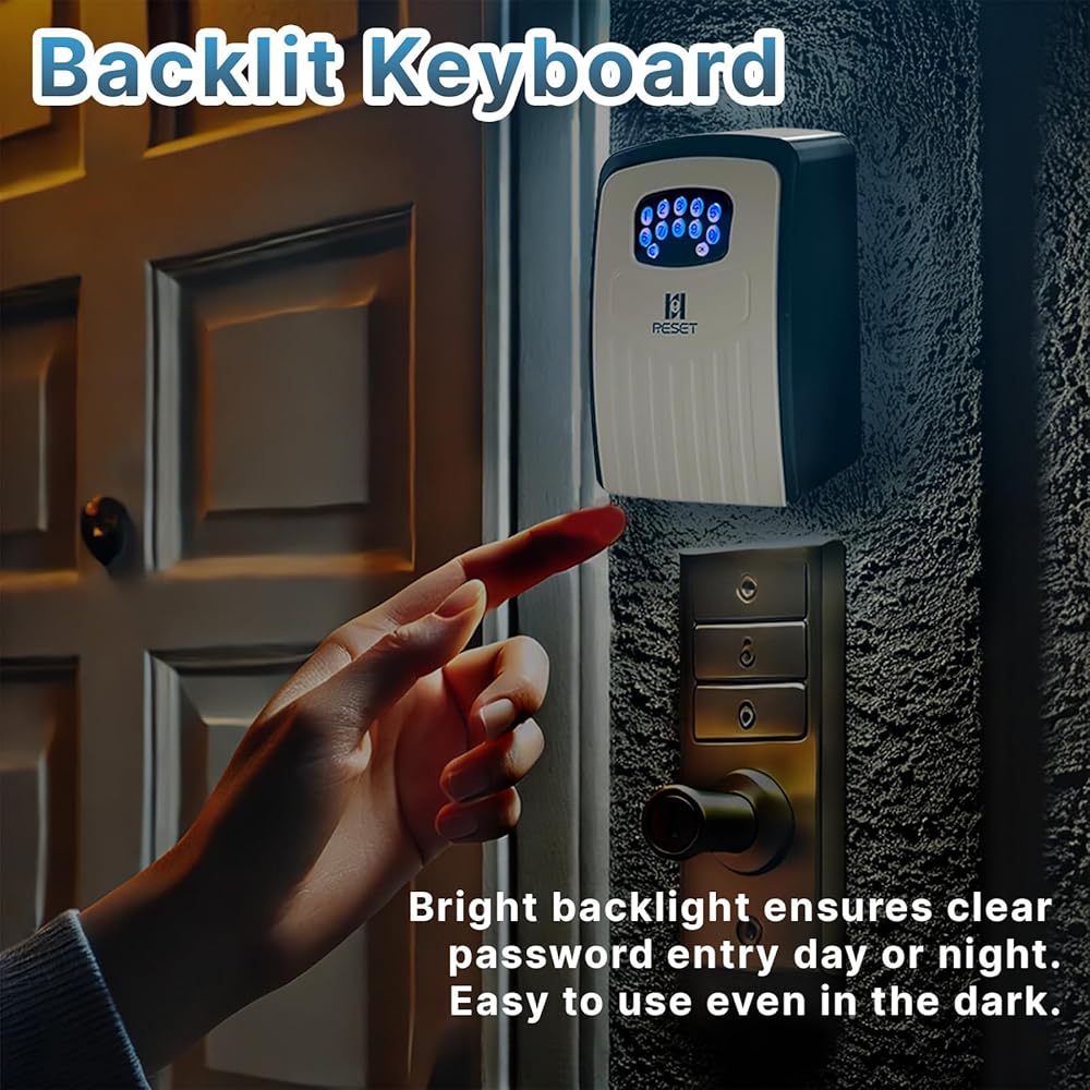RESET-104 Bluetooth Key Lock Box – Weather-Resistant, IPX5,Durable Metal Construction, Backlit Keypad, Preset 6-Digit Code, Customizable to 8–10 Digits, Ideal for Outdoor Home or Office Use