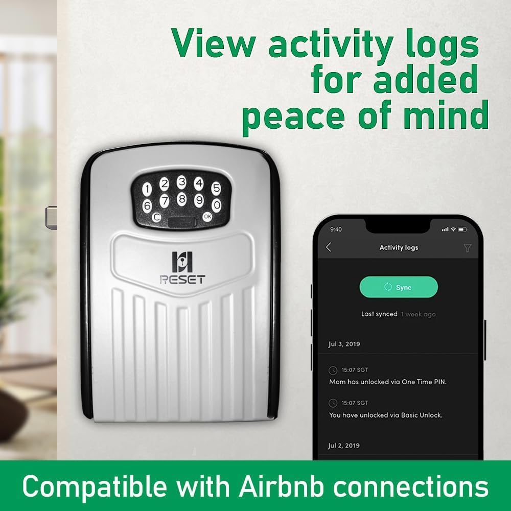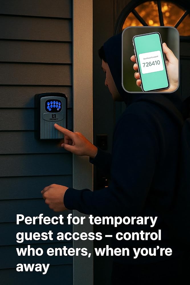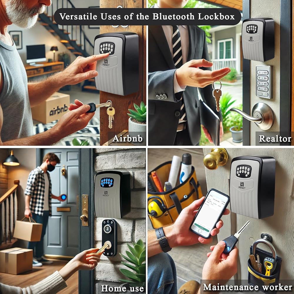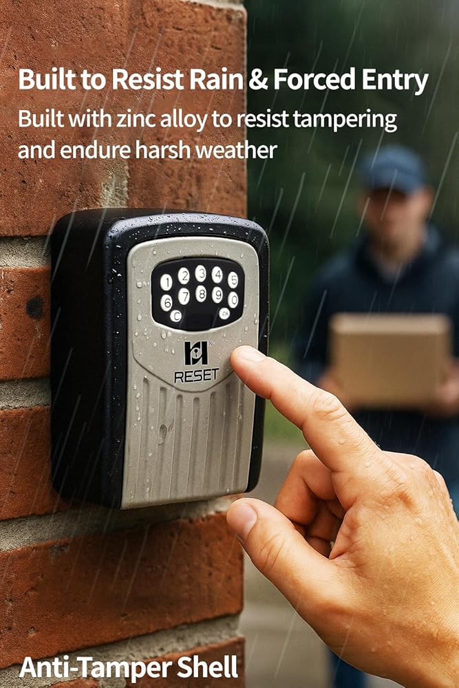 RESET-104 Bluetooth Key Lock Box – Weather-Resistant, IPX5,Durable Metal Construction, Backlit Keypad, Preset 6-Digit Code, Customizable to 8–10 Digits, Ideal for Outdoor Home or Office Use