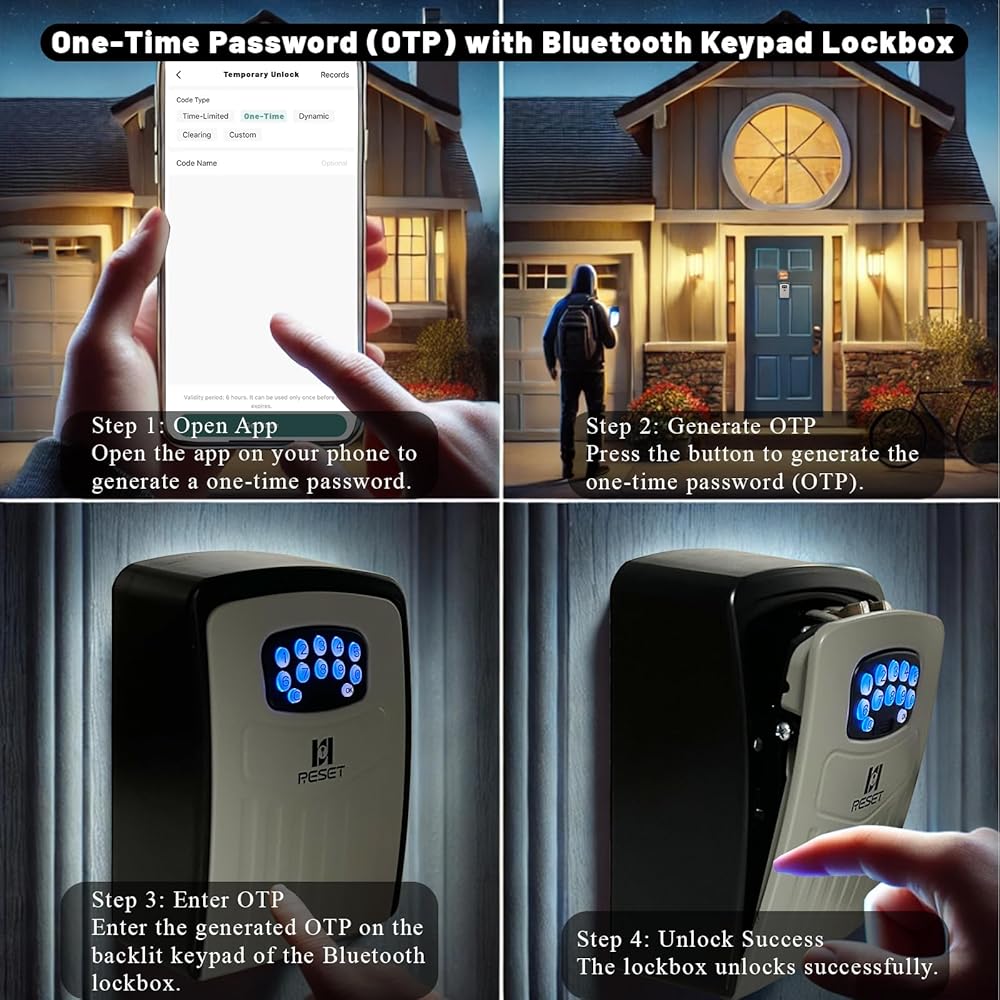 【Flexible Access with One-Time Codes & Bluetooth】Catering to emergencies or facilitating short-term rentals, our keybox ensures hassle-free access with one-time passcodes and a Bluetooth unlock feature.