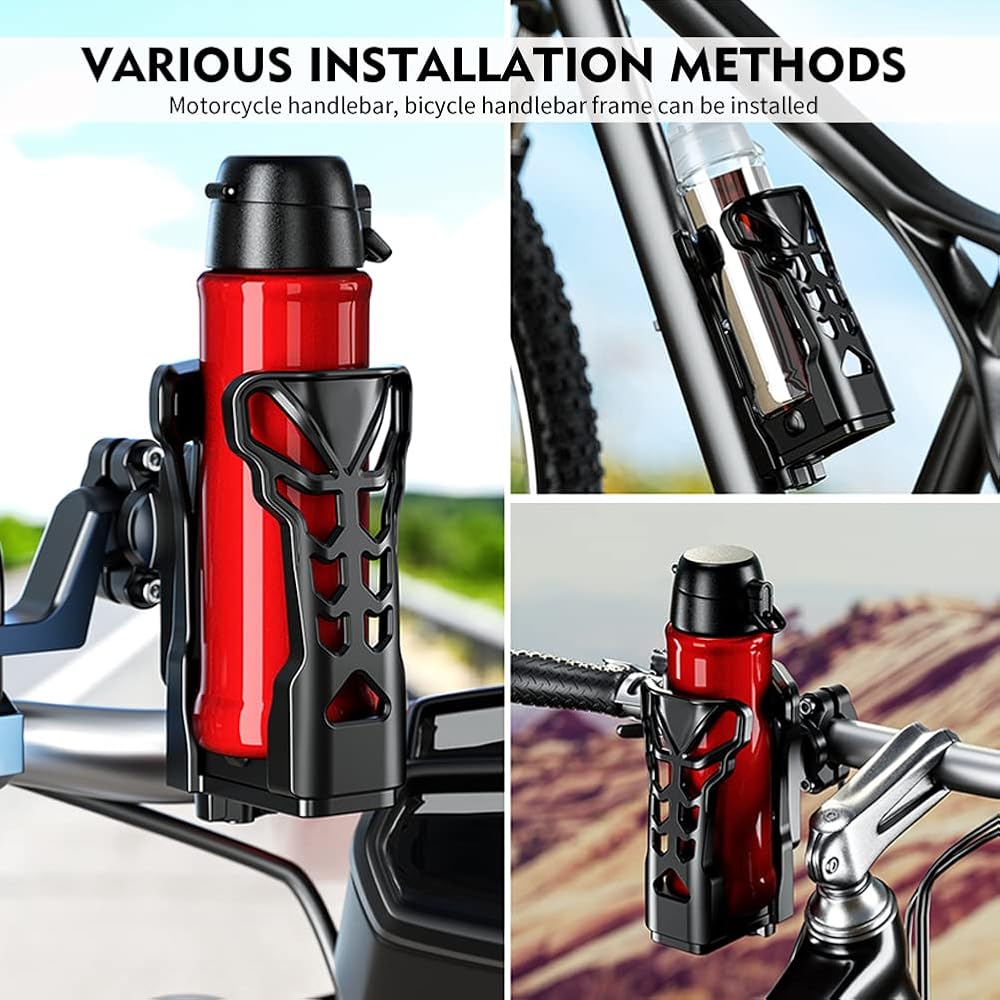 【Suitable for larger water bottles】Adjustable holder base allows your MTB bicycle / e-bike / Motorcycle / Scooter to carry a water bottle with a diameter of φ1.9"-φ3.5" (53mm-90mm) expanded. For extra-long rides, this keeps you hydrated. Most normal and big water bottles are compatible: 500, 550, 650, 750, and 950 ml / 20, 21, 25, 24, 25, and 32 ounce