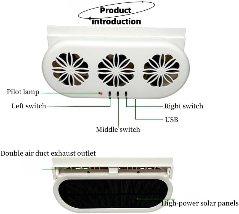 NOTE---This product only exhausts the heat and odor in the car, promotes air circulation, and has no direct cooling effect. Effectively promote air circulation in the car and keep the air fresh in the car.