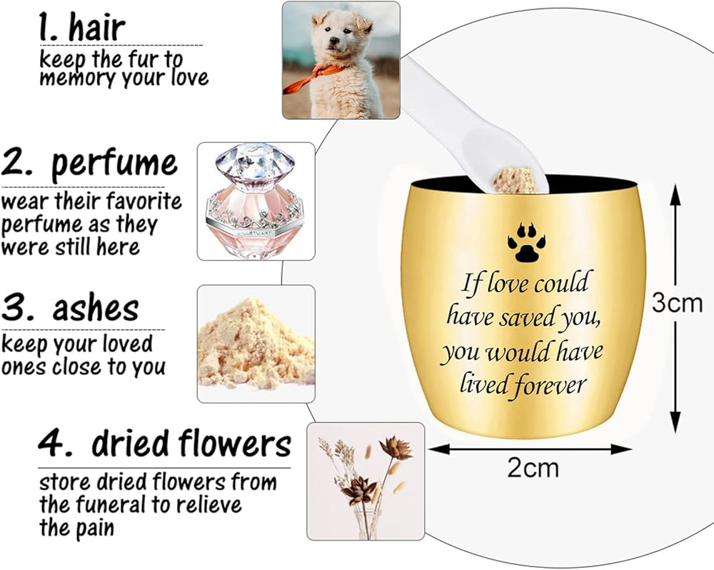Small Urn for Pet Ashes 1.57 inch Mini Pet Urn Stainless Steel Ashes Keepsake Urns for Dogs Cats-If Love Could Have Saved You, You Would Have Lived Forever