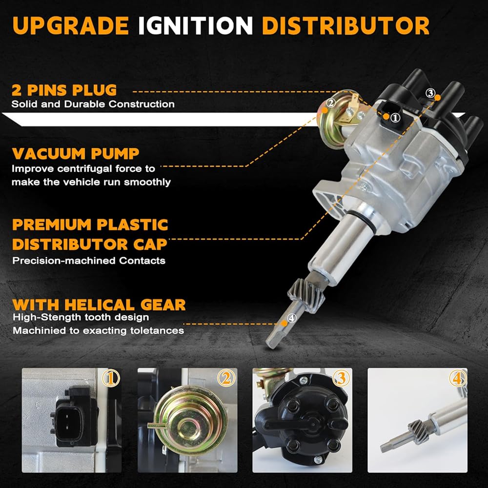 🙌PERFACT PERFORMANCE: 100% Compatible with OEM Parts, meets Original Equipment Manufacturer (OEM) Standards; Precision machined bodies assure correct fit and accurate mount locations.Precision machined ground shafts assure high speed accuracy and prevent bearing failures; All electronic module components of this ignition distributor are 100% computer tested to ensure full functionality.