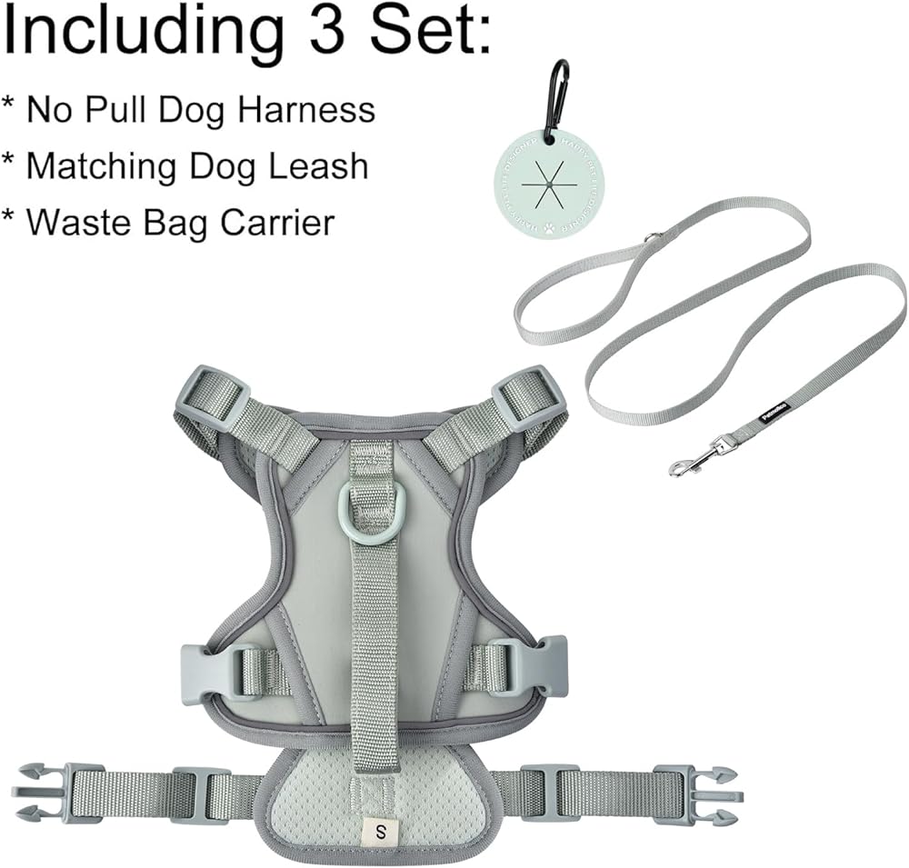 [ 3 Set Small Dog Harness] Petmolico dog harness set includes a vest style harness + matching dog leash + used waste bag carrier. The small dog harness size suits dog chest girth: 14-24 inches and neck size 12-18 inches; The dog leash is 5 Ft length and 0.6 inch width. ( NOTE: Because dogs come in different shapes and sizes; It's very important to measure your dog's Chest Girth and Neck Size rather than go by the weight. )