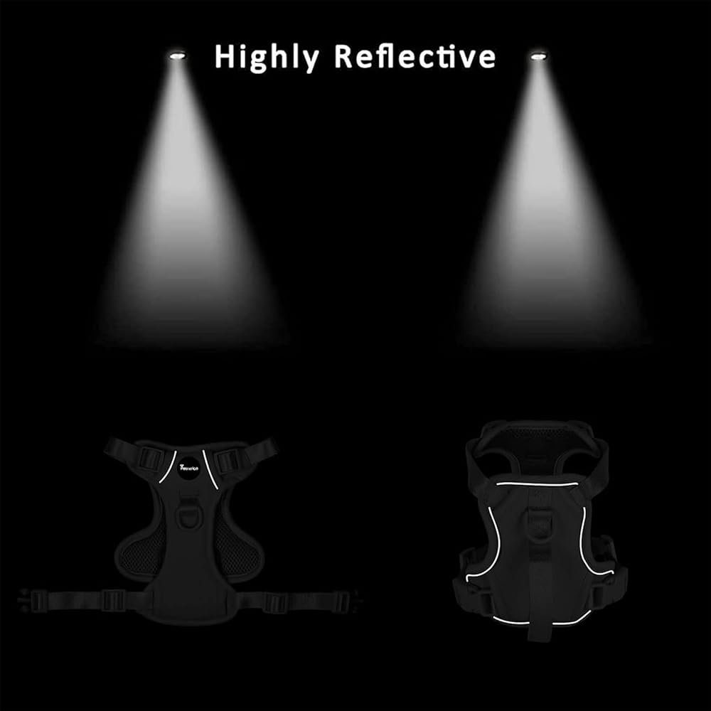 [ Two Metal Clips ] No pull dog harness has two different D-rings to attach the leash. Attach to the chest D-ring to stop pulling, and use the back D-ring for more relaxed walks. And soft handle on the back adds more control on walks. Reflective straps makes both of you safer in the dark.