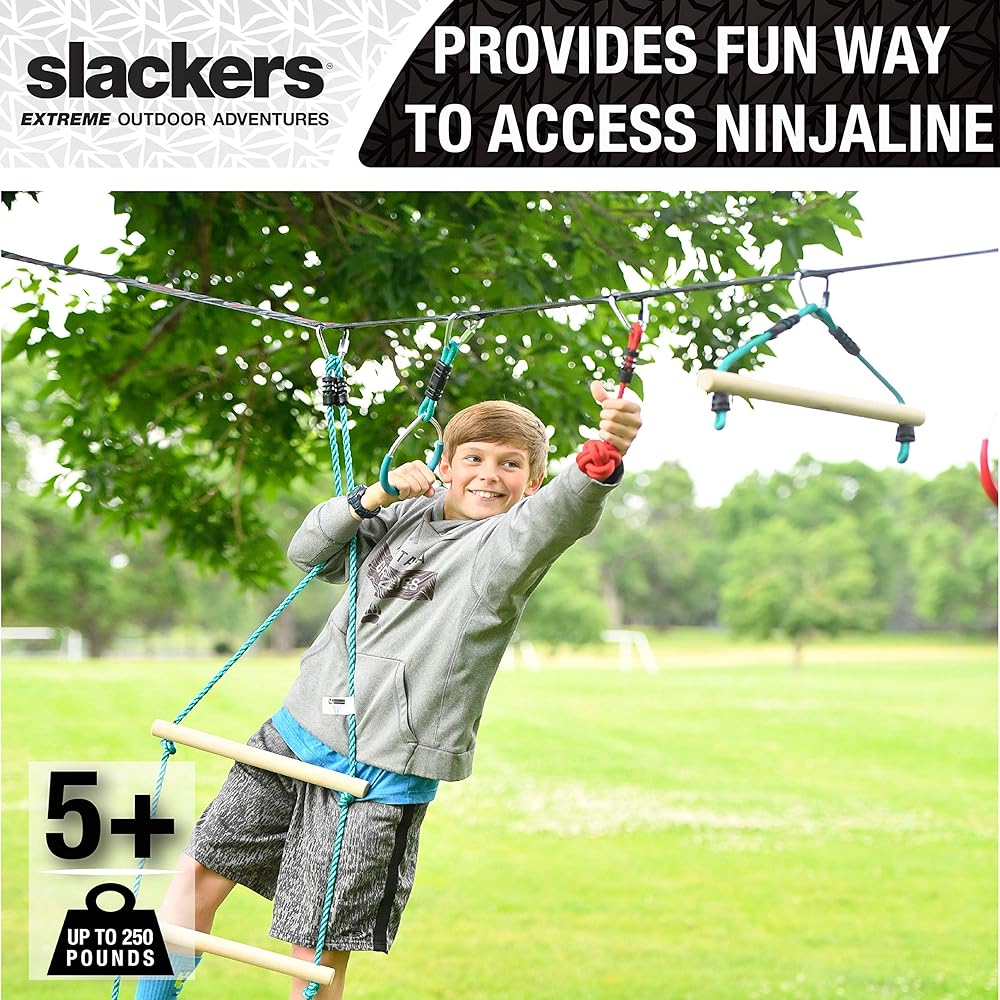 SAFETY FIRST- At Slackers, we are focused on creating safe, reliable obstacle course equipment, ideal for building up your inner Ninja Warrior. The Rope-Ladder is rated ages 5+ and holds up to 250 LBS. Parental supervision required*