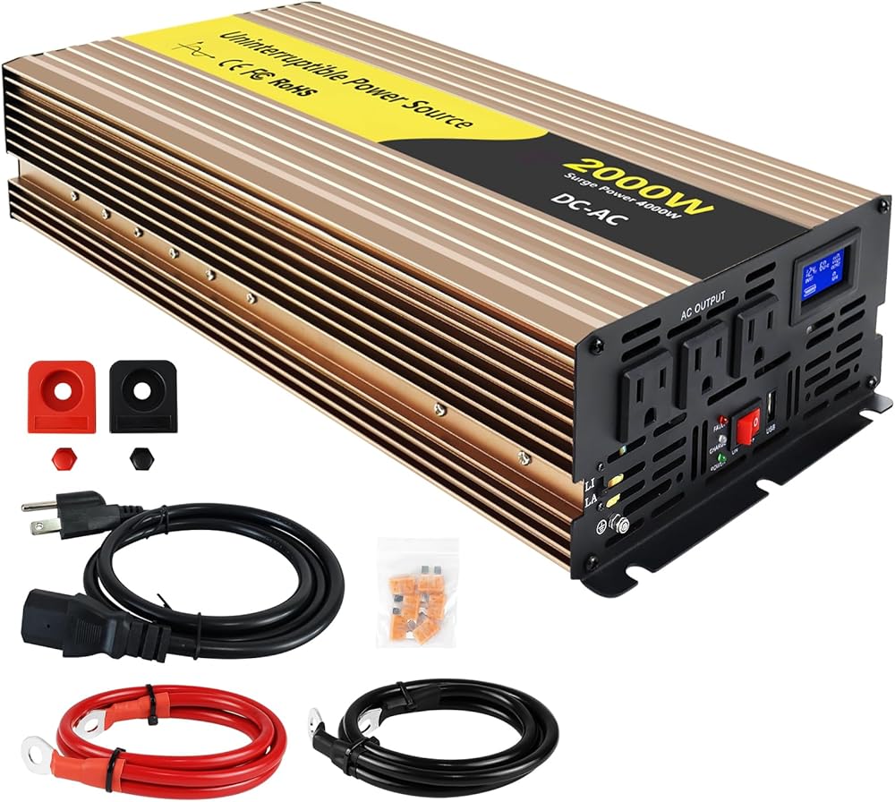 2000W Sump Pump Battery Backup Power System,Basment Protection Sump Pump Inverter with LCD Display and Automatic Battery Backup Switching for Basement Emergency and Power Outage Backup (Gold)