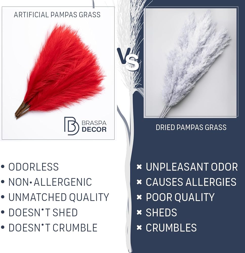 🌾𝗡𝗢 𝗦𝗛𝗘𝗗𝗗𝗜𝗡𝗚: Our artificial colored small pampas grass decor red is designed to be mess-free. Unlike dried pampas grass, ours won't shed, ensuring your space stays clean and tidy.