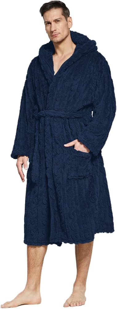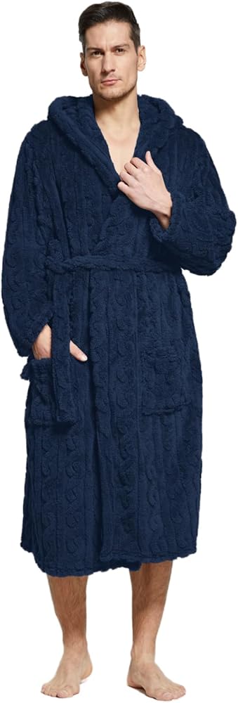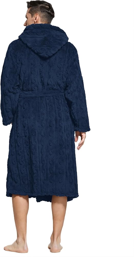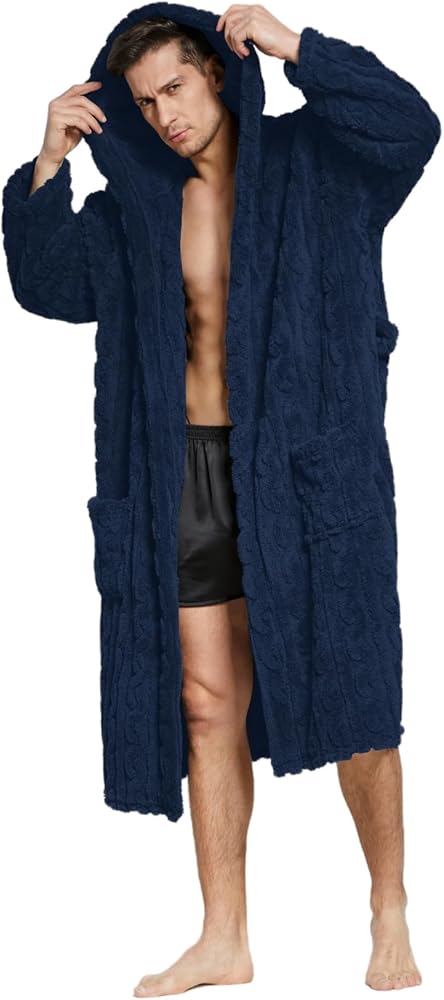 Cozy - The mens bathrobe is soft and fluffy, which can be worn all day long; the robes carries a classic design with a hood to give a trendy look to it.