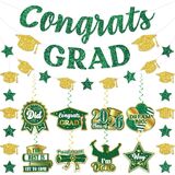 package includes: our blue and red graduation decorations 2024 includes 1pc glittery "congrats" banner, 1pc "grad" banner, 1 pc college graduation decorations garland, and 8pcs graduation party supplies hanging swirls which have different designs each. the red white and blue decorations hanging swirls come with 8 pcs different card cutouts in 8 different designs, 8 pcs glitter foil ceiling swirls streams in blue and red
