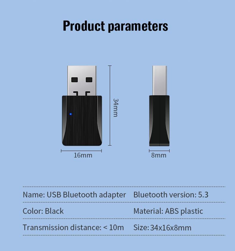 This USB wireless audio transmitter is an efficient audio transmission device, which has a variety of advanced characteristics and functions. Its input port adopts a USB interface and can be convenient to connect to various devices. In the case of unobstructed, the transmission distance can reach 8 meters, allowing you to enjoy greater flexibility when using. The frequency range of the transmitter is 2.402GHz-2.480GHz, supporting A2DP, AVRCP, and HFP to ensure the stable connection and smooth audio transmission of various compatible devices. The power supply of the device is used in USB DC5V, which is convenient and easy to use. It also supports ordinary voice and broadband voice. The sampling rate is 8K and 16K, respectively. The encoding method is CVSD and MSBC to provide you with high -quality audio experience. Whether it is for music playback, voice calls, or other audio applications, this USB wireless audio transmitter can meet your needs and bring you convenient and excellent audio transmission effects.