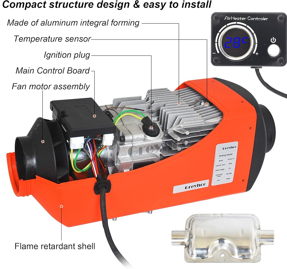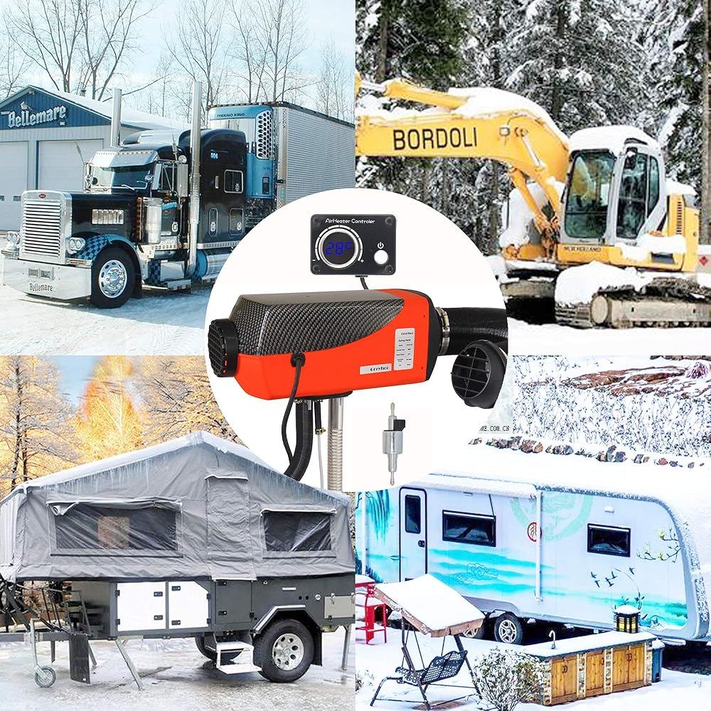 【WIDE RANGE OF APPLICATIONS】: indoor heating, eliminating fog Windows. It is suitable for heating the cab of all kinds of diesel machinery vehicles such as car, bus, RV, truck and engineering vehicle, camping trailer
