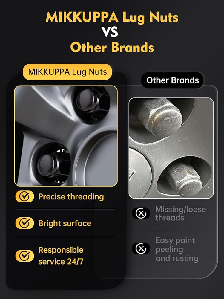 🚙MORE THAN LUG NUTS - We go above and beyond to provide the highest quality wheel lug nut and top notch customer service. Contact us and we will give you a satisfactory answer within 24 hours. The 12-month warranty gives you a worry-free shopping experience.