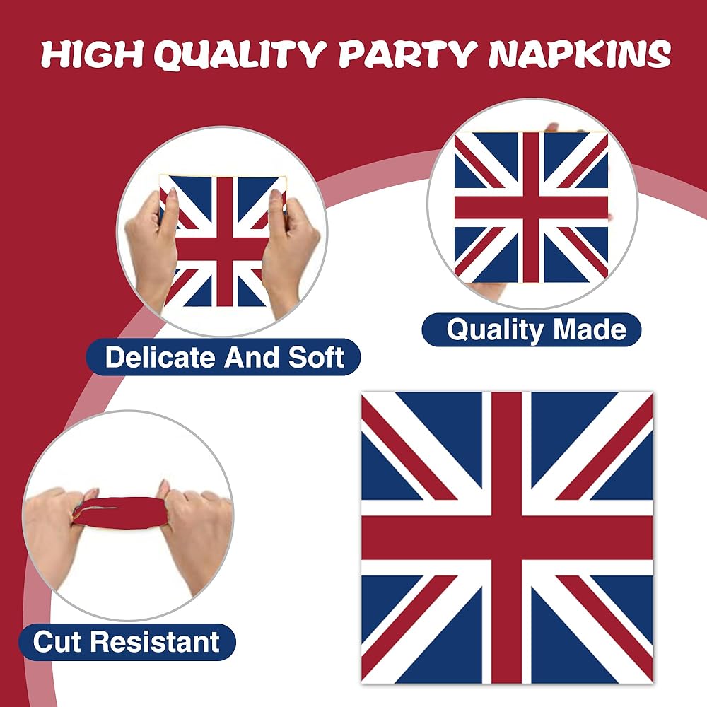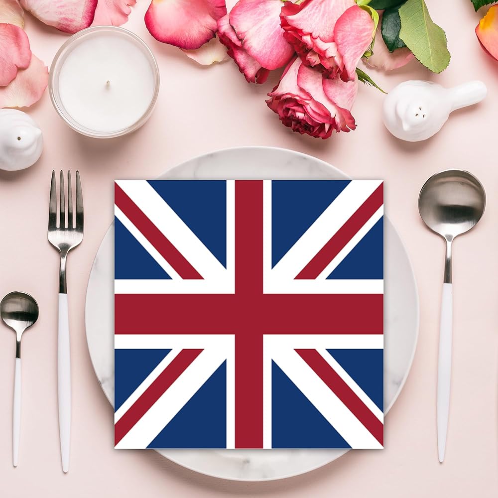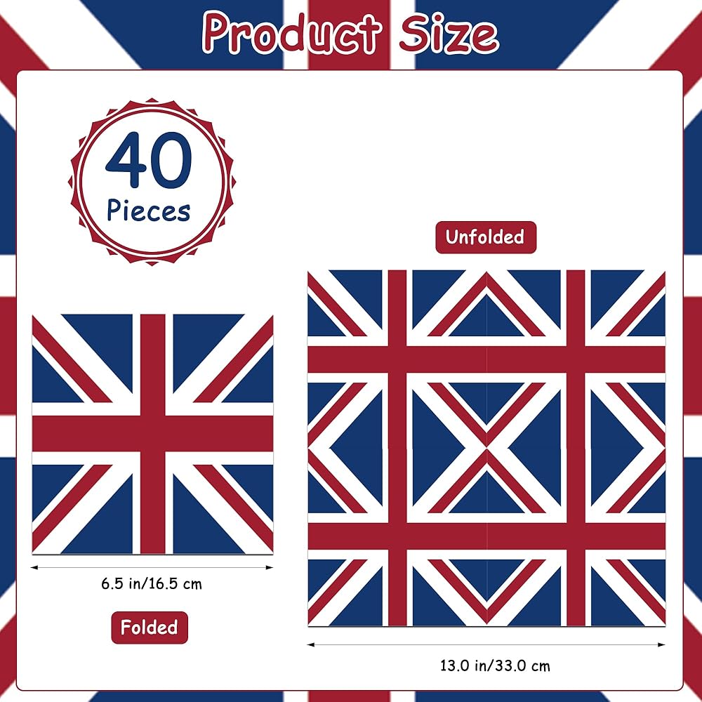 40Pcs British Paper Napkins British National Day Theme Party Decorations Disposable Party Napkins Set England Flag Paper Luncheon Napkins London UK Flag Design Theme Supplies