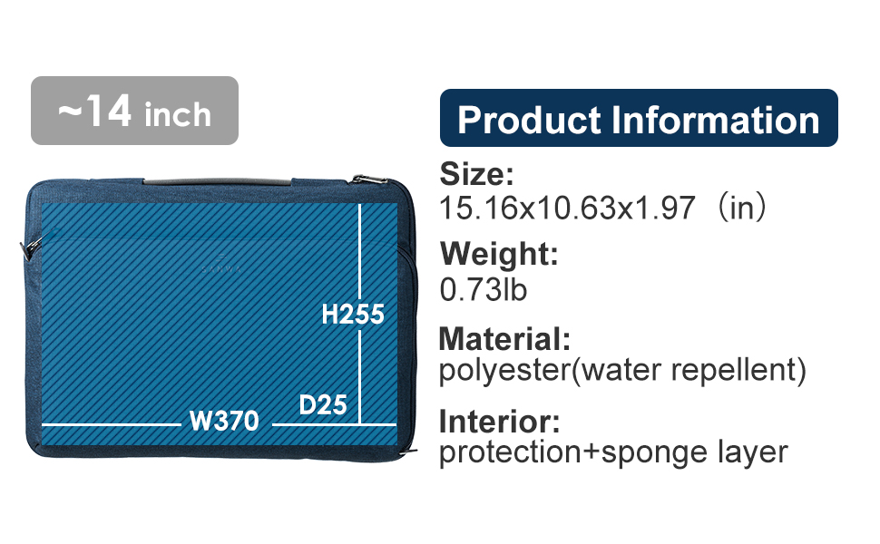 SANWA 14 inch Laptop Sleeve Case with Front Pocket, YKK Zipper, Waterproof Shock Resistant Bag, Accessory Pocket, Compatible with MacBook, Pad, Tablet, Surface, Dell, HP, Lenovo, Computer, Navy