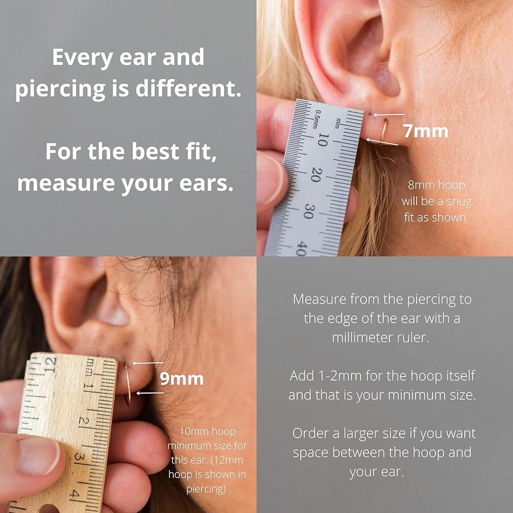 - 1 pair of hoops (two individual) in 12mm or 1/2 inch (inside opening is 10-11mm), and standard 22 gauge thickness.