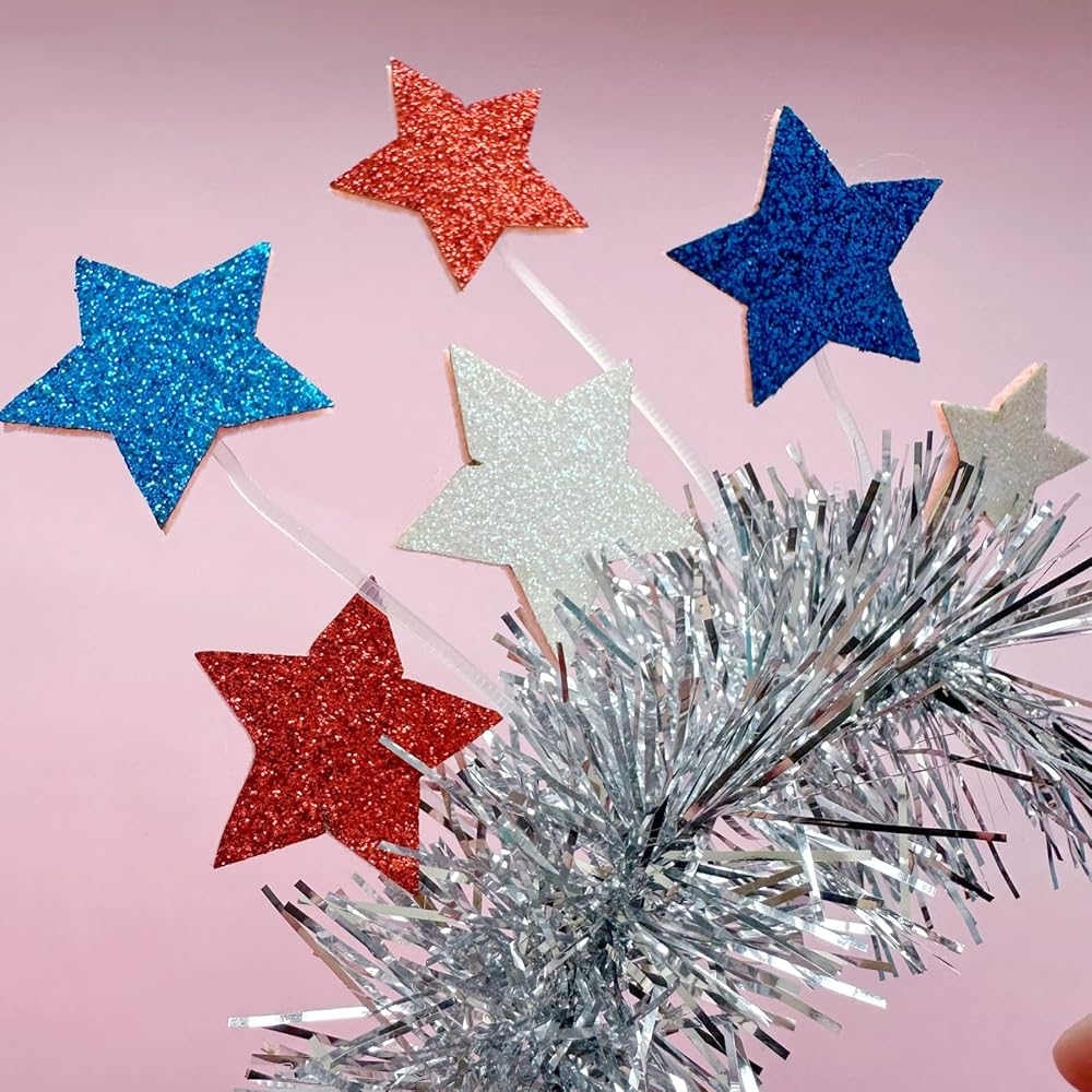 July 4th Accessories: this set contains 2 pcs 4th of july decorations: glitter star headband and American flag sunglasses.