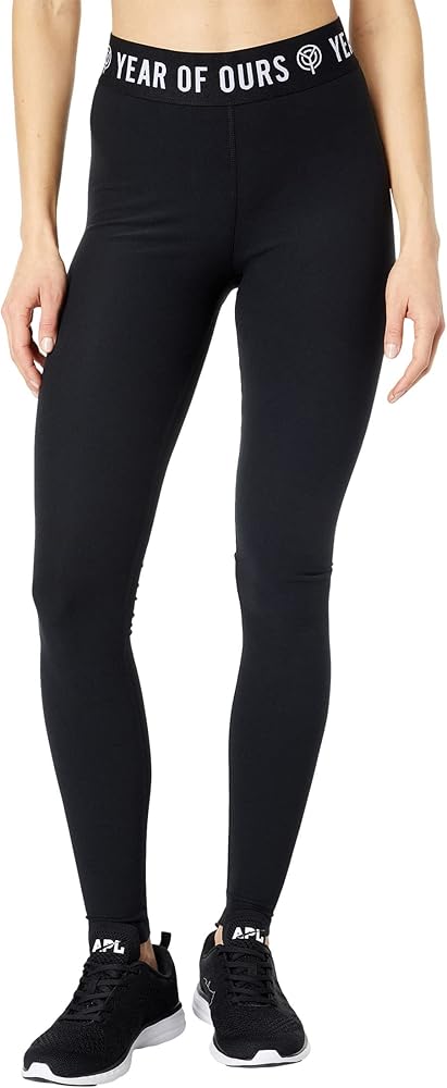 Stay fit and look stylish wearing these YEAR OF OURS Stretch Skater Leggings during your everyday workout sessions. Stretched fabric allows for full movement. Signature YEAR OF OURS logo on the waistband. 87% polyester, 13% spandex. Machine wash, tumble dry. Made in the USA.