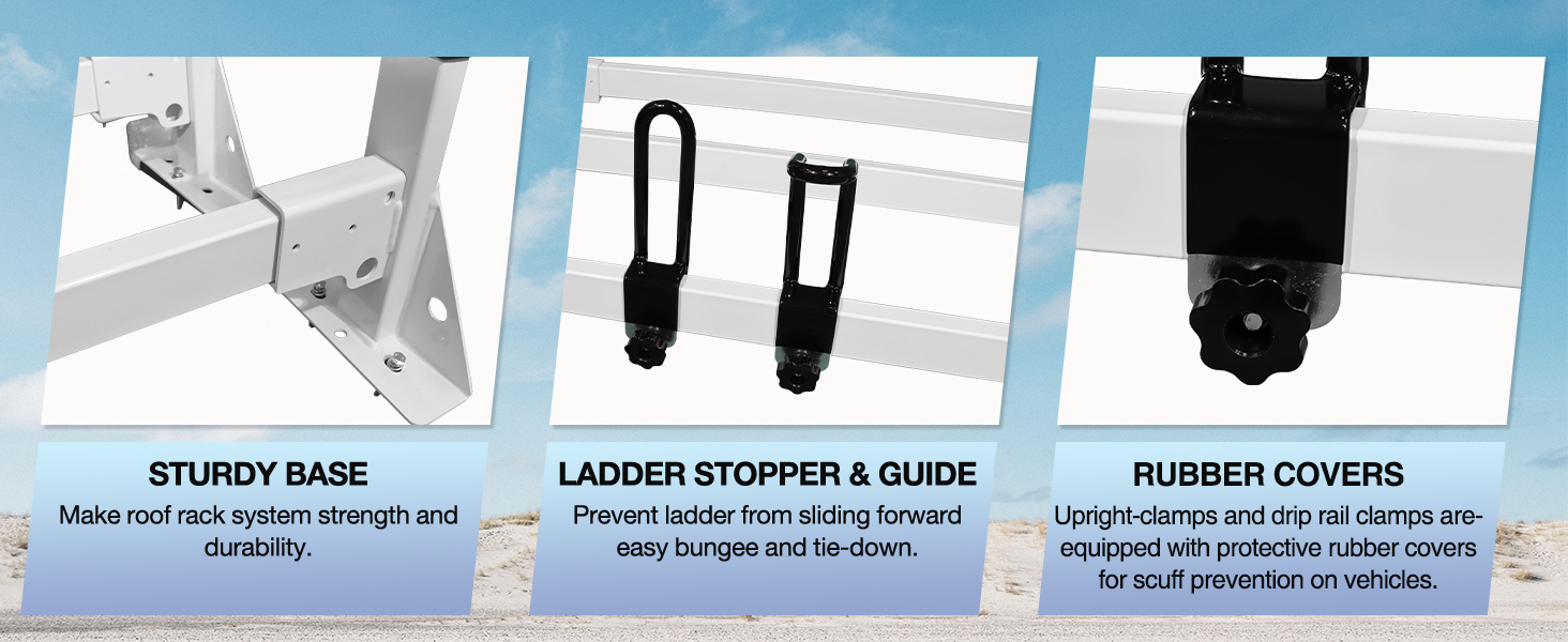 QUALITY: The van ladder rack use alloy steel to resist oxidation and corrosion. Moreover,the surface of the ladder roof rack has been specially treated for normal wear & tear.
