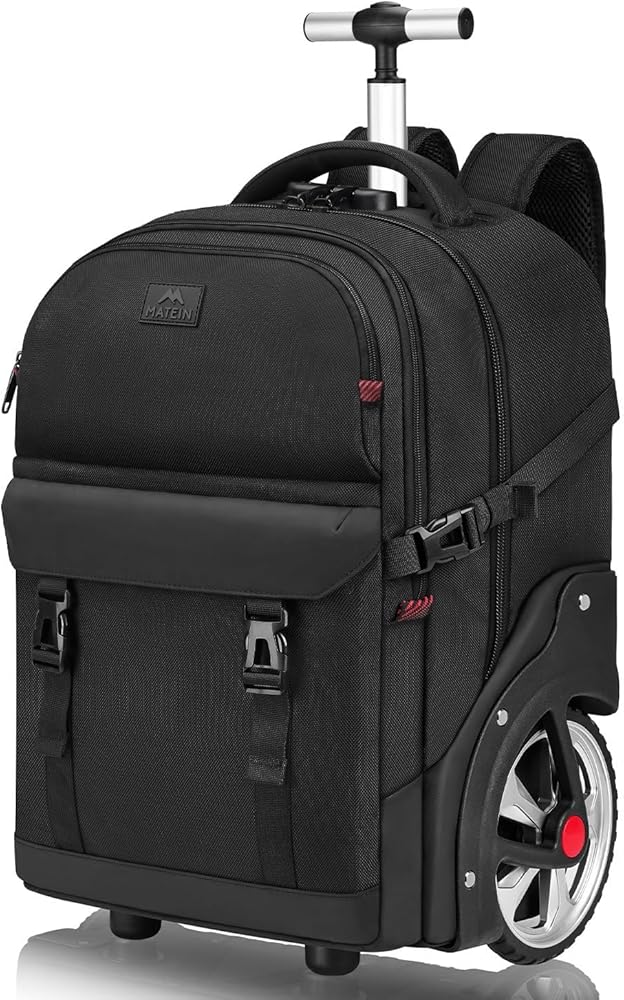 MATEIN Rolling Backpack for Men with Wheels, 17 Inch Large Wheeled Backpack with Combination Lock, Water Resistant Anti Theft Travel Laptop Backpack for Adults Work Business, Black