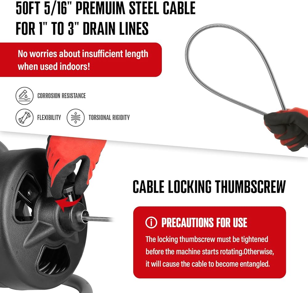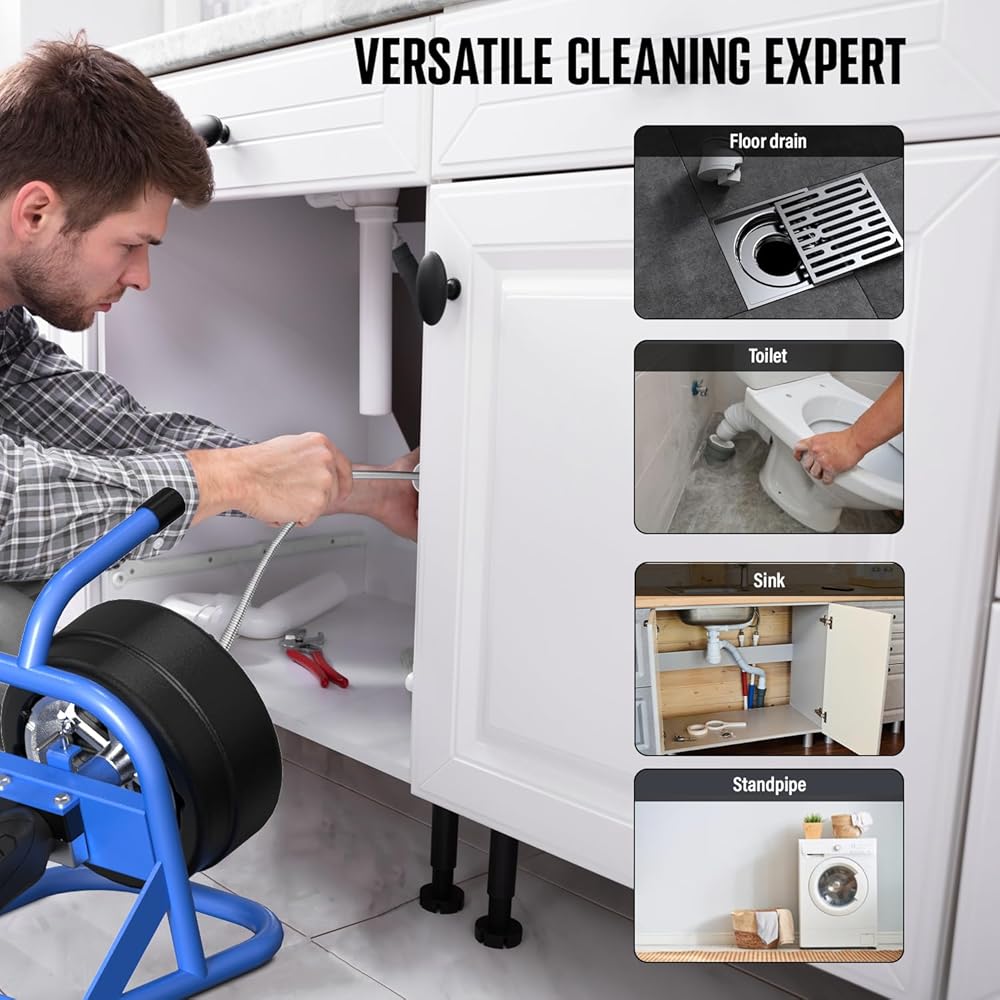 【Versatile Cleaning Expert】One machine to solve all unclogging problems at home. Suitable for 1 to 3 inch pipes and perfectly designed for kitchen sinks, bathroom drains, floor drains, and toilets. Choosing us is more than just choosing a tool, it's choosing a cleaner home environment.