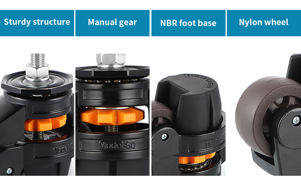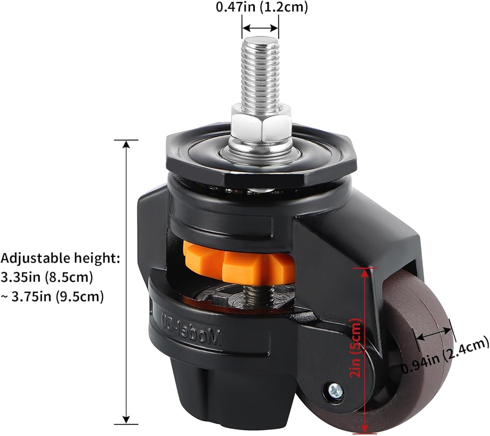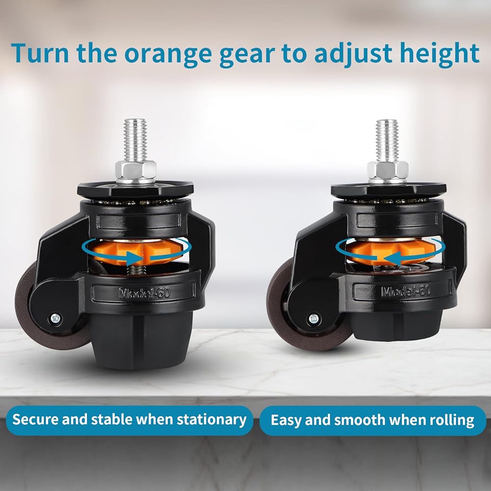 HEIGHT ADJUSTMENT: With a built-in gear, it's easy to raise or lower the caster, height range is 3.35" to 3.75"; adjusting leveling caster independently allows the heavy duty item sit steady even on an uneven surface