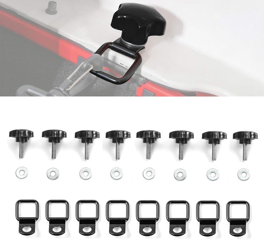 Function: Harptop quick release bolts and Tie down For Jeep Wrangler make the trunk area more tidyer and more safer.D-Rings add anchor points for anchoring the cargo net or straps,points for anchoring the cargo net or straps. The Hard Top screws sets compatible with cargo cover, organizer, and most cargo nets and cords.