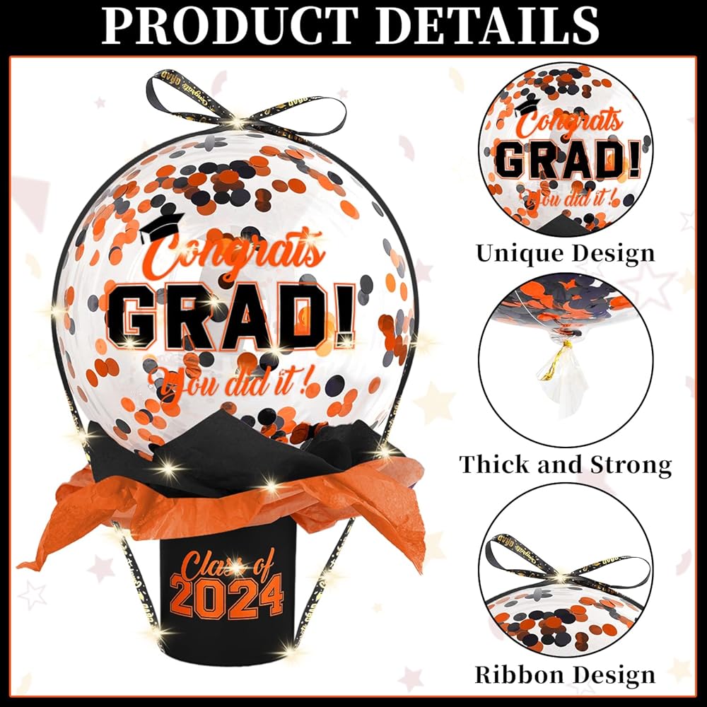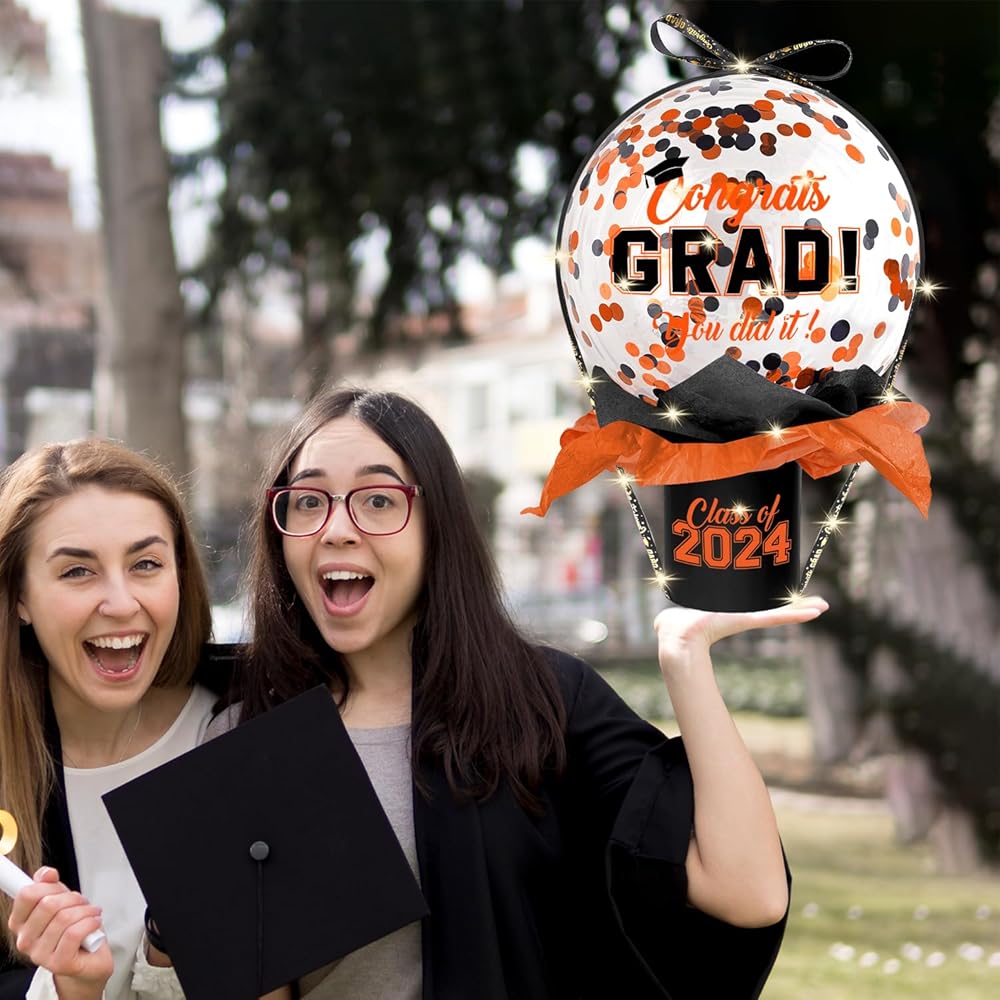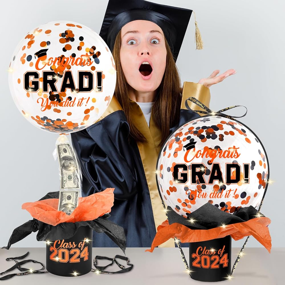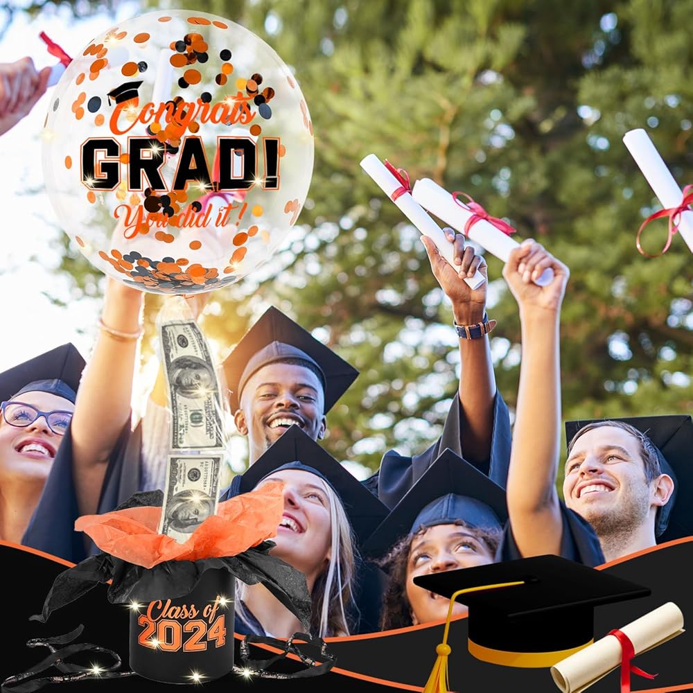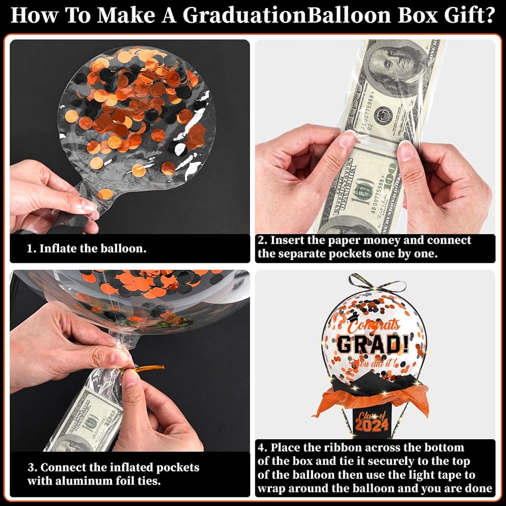 Graduation Gift Best Choice: Our graduation gift is designed specifically for the Class of 2024 and is sure to make them feel happy and appreciated by you. Imagine the graduates being surprised and thrilled by a money pulling balloon box as they untie the ribbon in front of the crowd and then the graduation balloons and yearbook money instantly float inside.