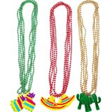 تحتوي العبوة على 7 قلادات ذهبية مع صبار، 7 قلادات خضراء مع بيناتا، 7 قلادات حمراء مع سومبريرو. إجمالي 21 قطعة.