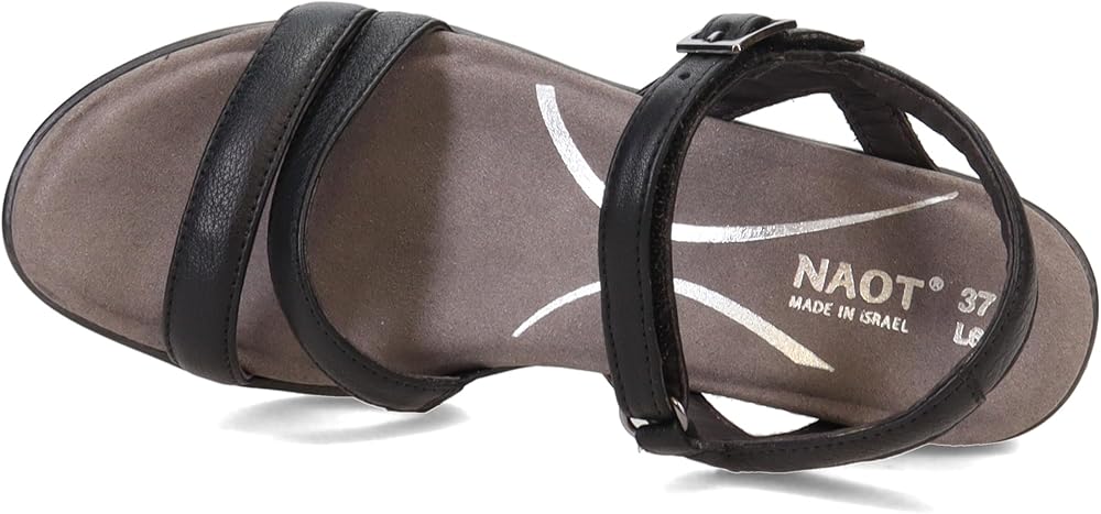 The bounty is the perfect heel. This style has a padded backstrap & front strap for ultimate comfort. The Bounty features a faux buckle hook & loop closure at the instep & gore at the front for adjustability. Naot's anatomic cork & latex footbed is wrapped in pampering suede and molds to the shape of the foot with wear. The Supreme Collection features a metal shank and provides the look of a 2.25" heel without the feel.